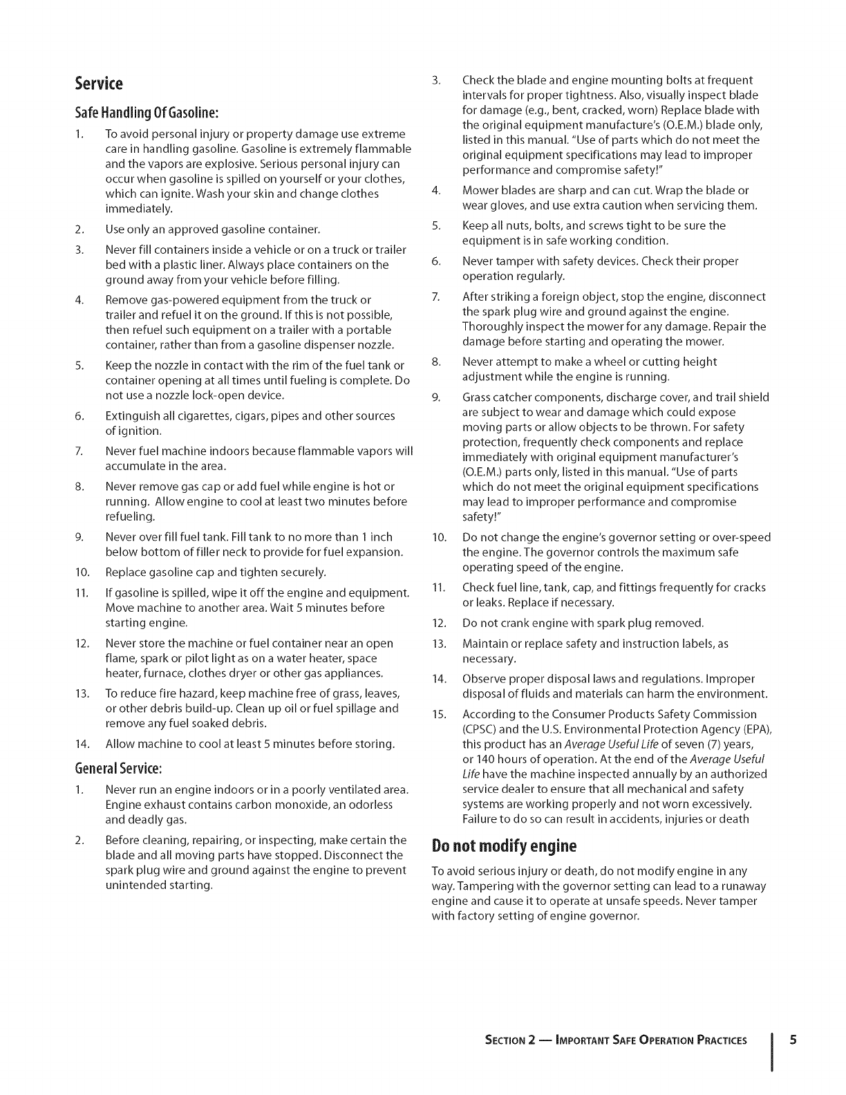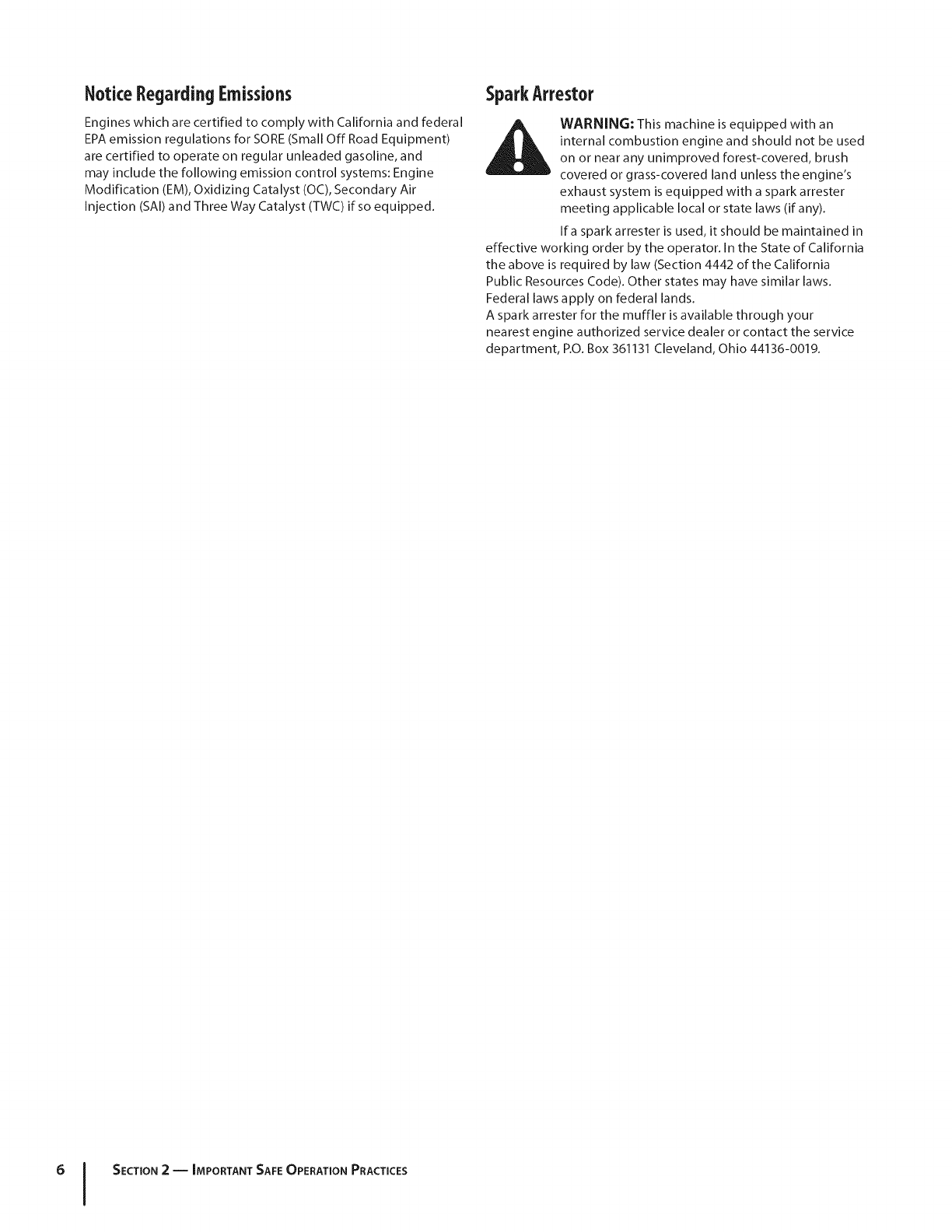 Safe Operation Practices • Set-Up • Operation • Maintenance • Service • Troubleshooting • Warranty