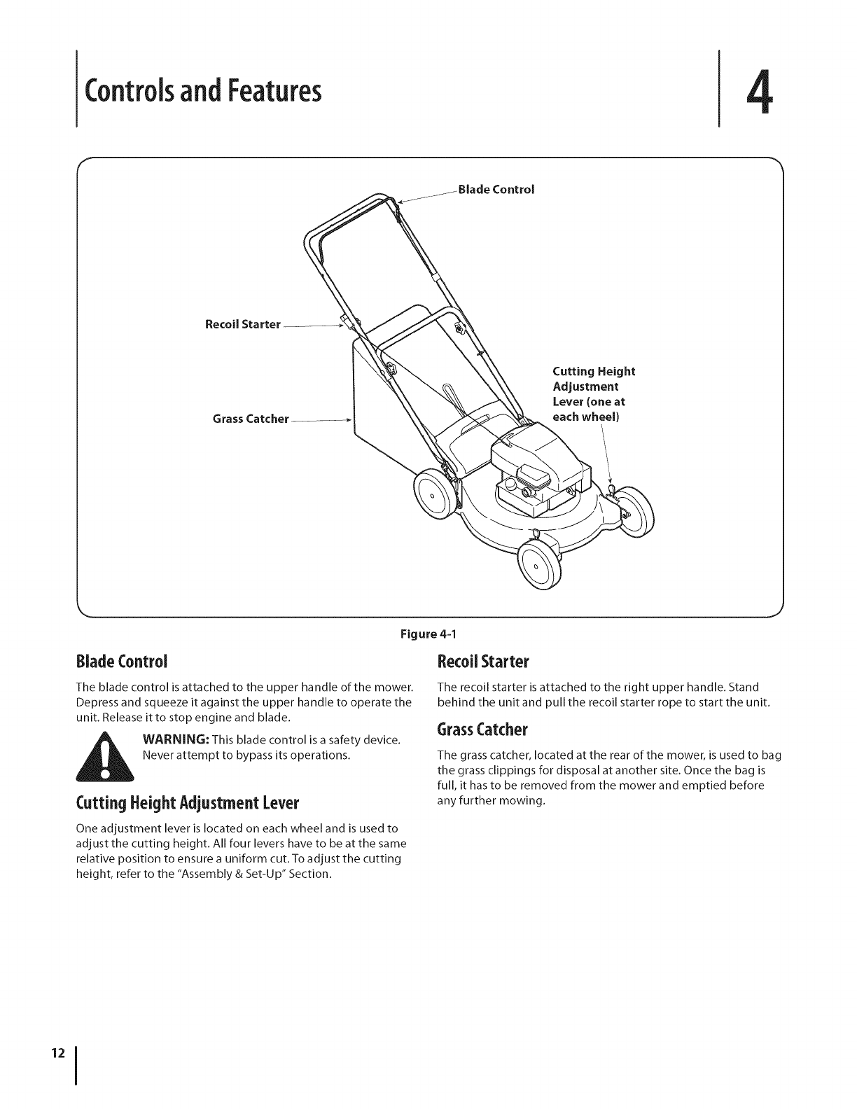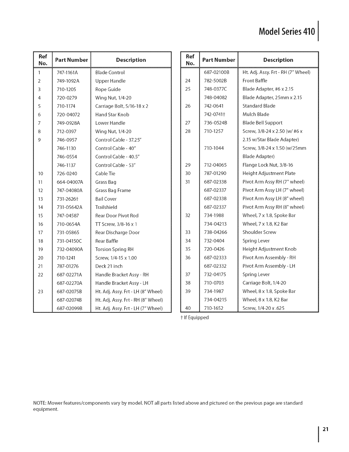 NOTE: Mower features/components vary by model. NOT all parts listed above and pictured on the previous page are standard