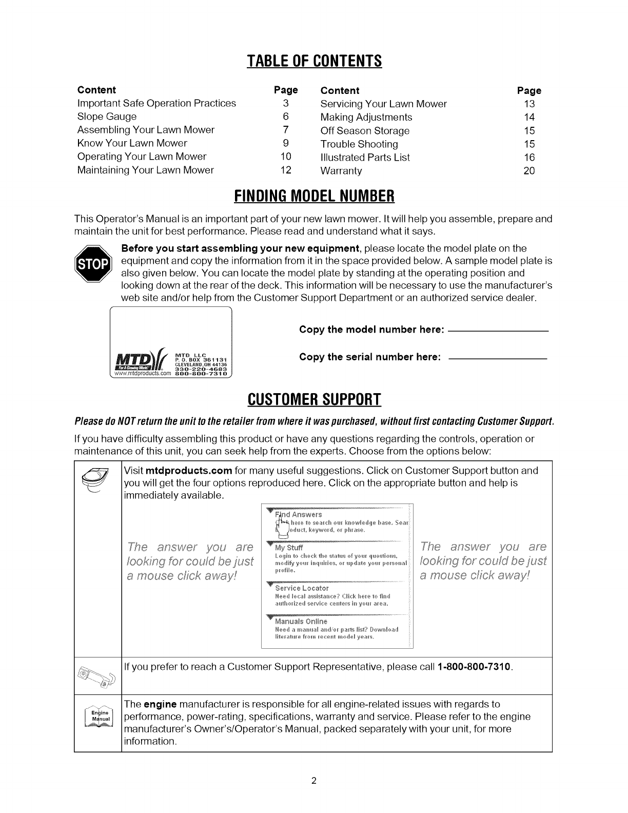 Visit mtdproducts.com for many useful suggestions. Click on Customer Support button and