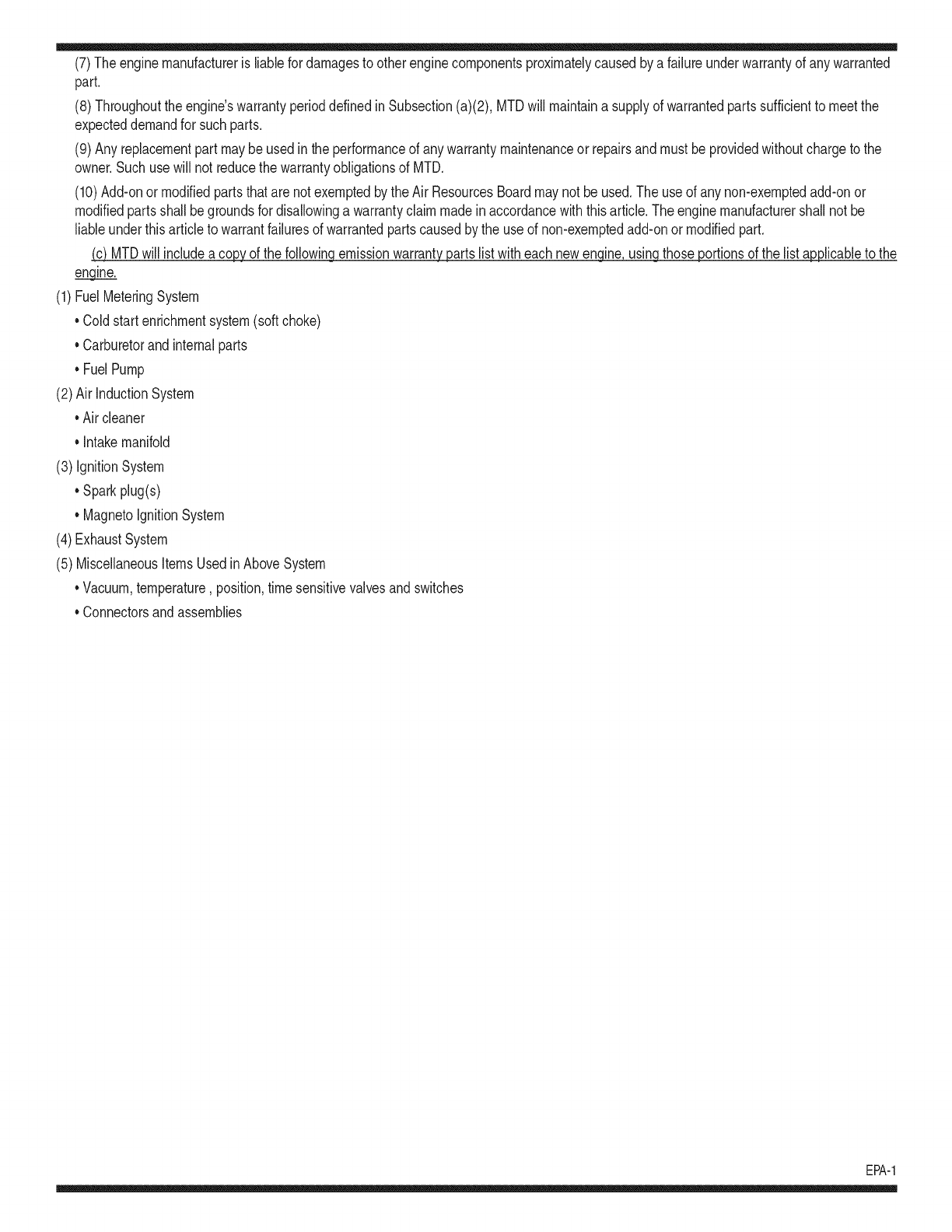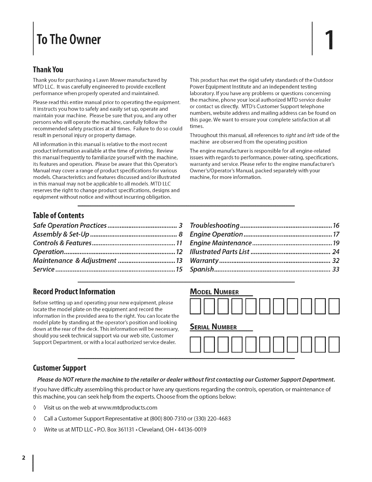 Write us at MTD LLC • P.O. Box 361131 • Cleveland, OH • 44136-0019