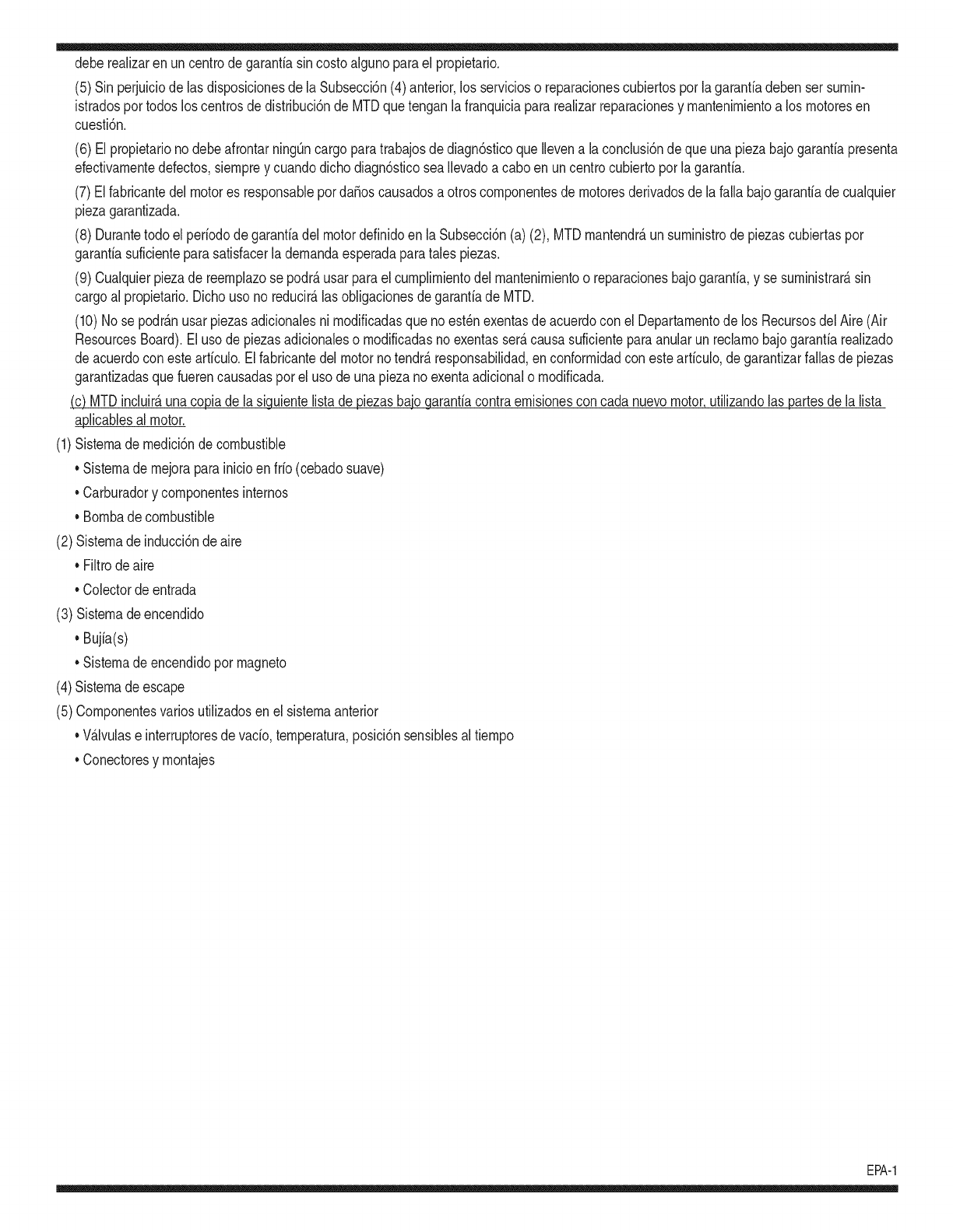 "MTD" garantiza este producto (excluidas las PiezasyAccesorios