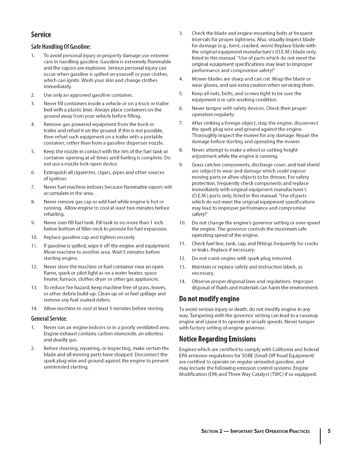 Safe Operation Practices • Set-Up • Operation • Maintenance • Service • Troubleshooting • Warranty