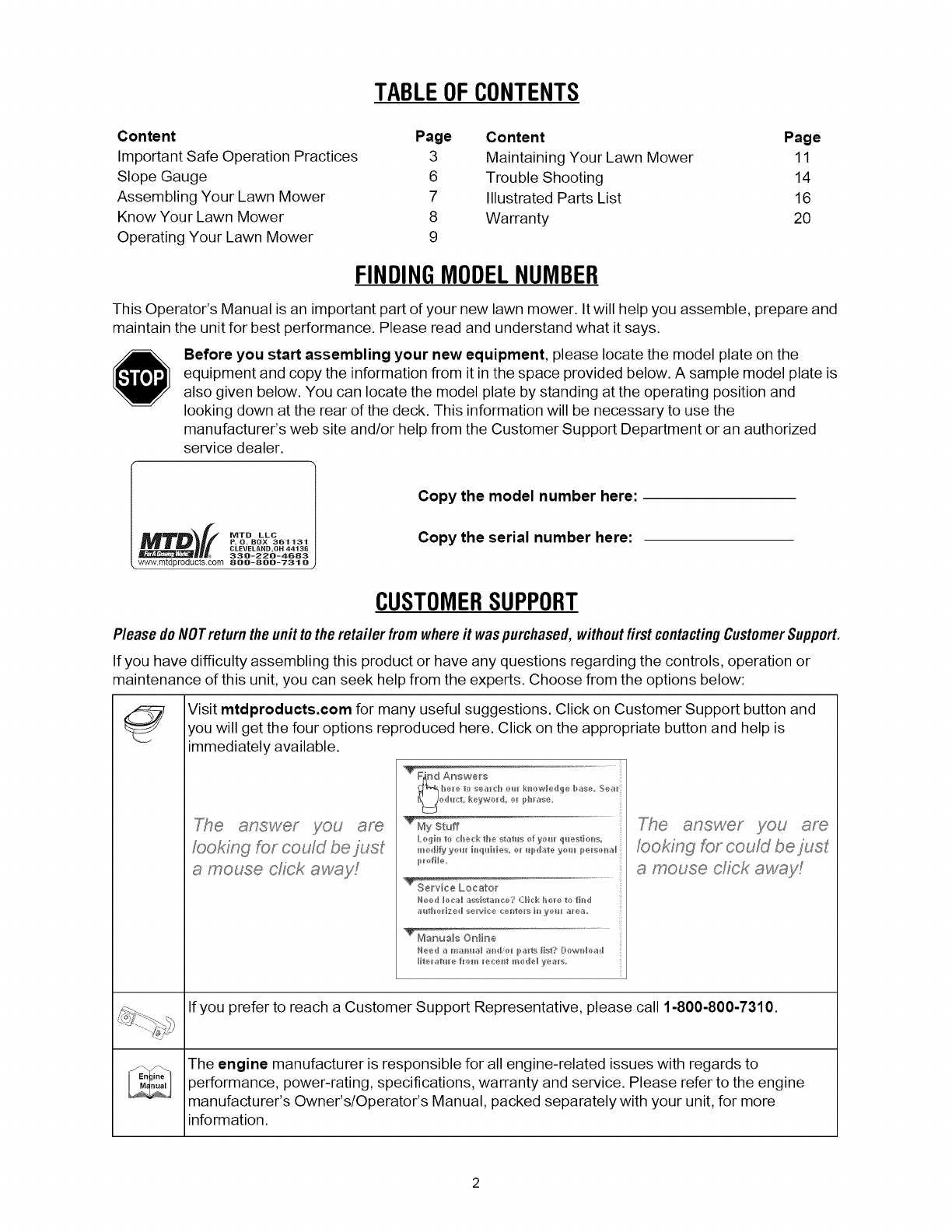 Visit mtdproducts.com for many useful suggestions. Click on Customer Support button and