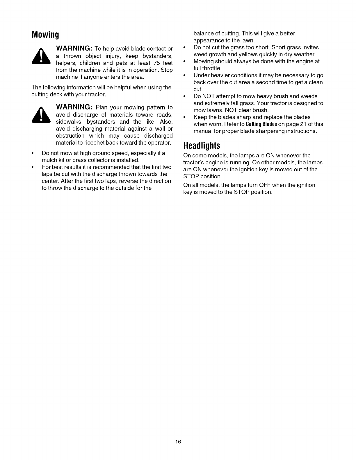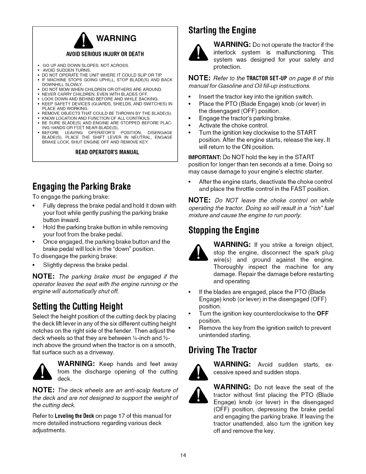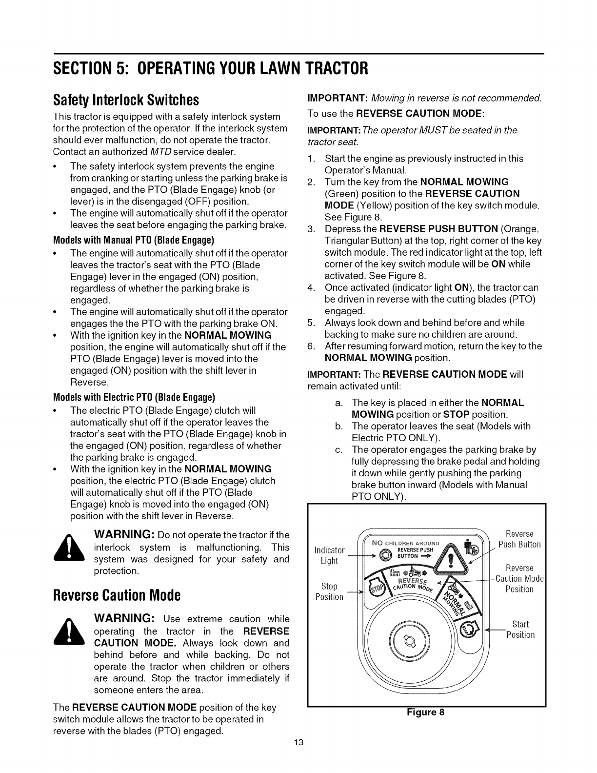 Operating Your Lawn Tractor ................................................................................... 13