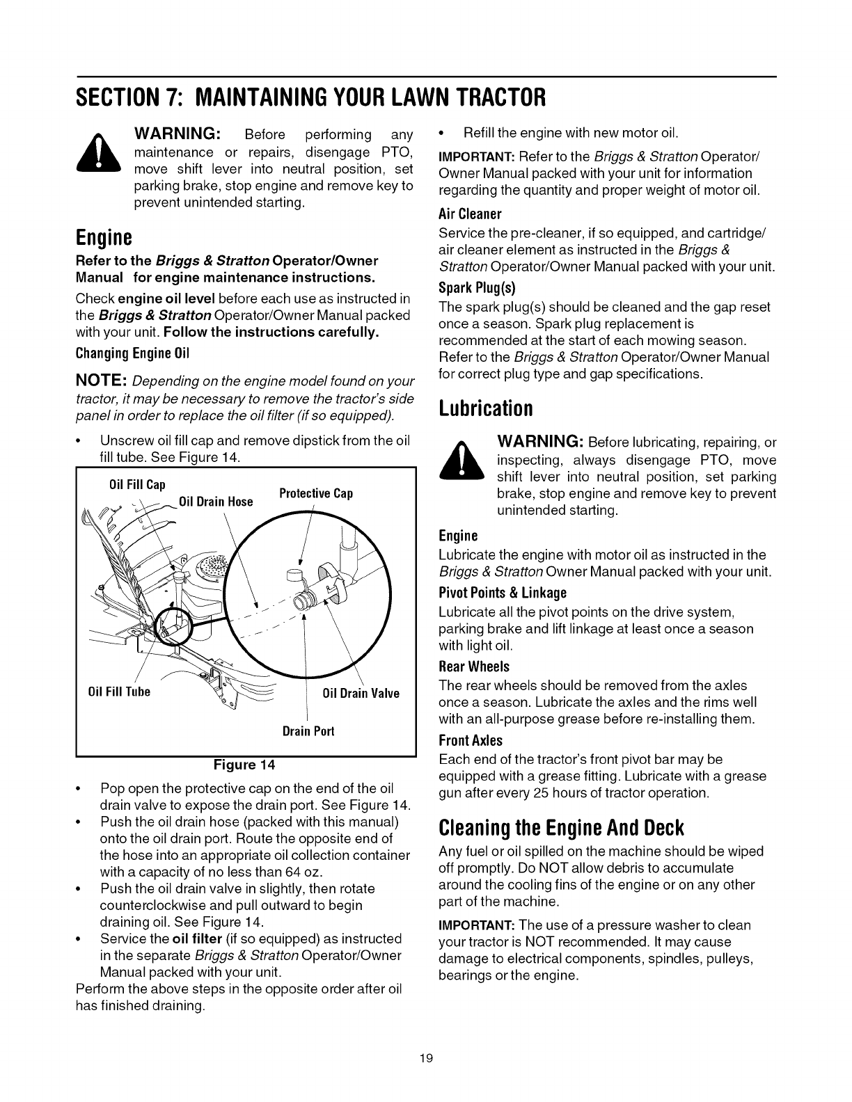 Maintaining Your Lawn Tractor ................................................................................ 19