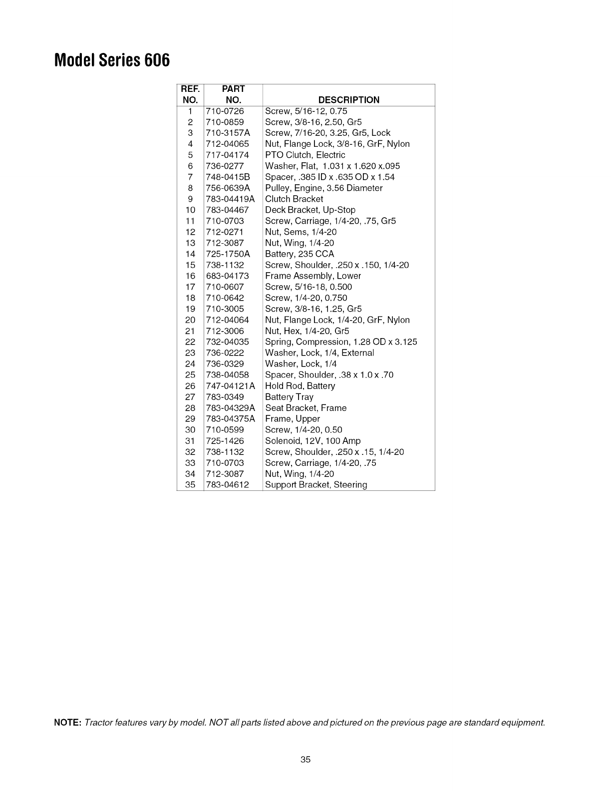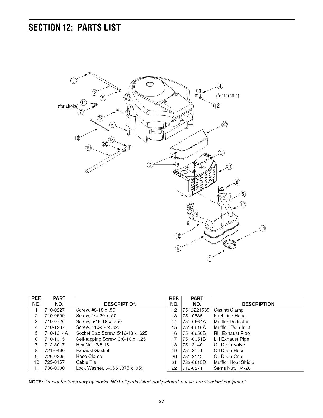 specifications, warranty and service. Please refer to the engine manufacturer's Owner's/Operator's Manual packed