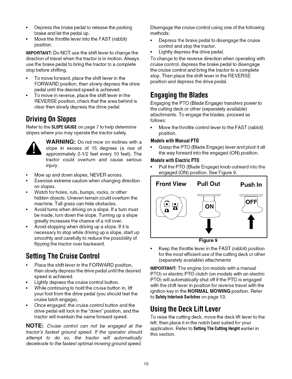 Know Your Lawn Tractor ......................................................................................... 9