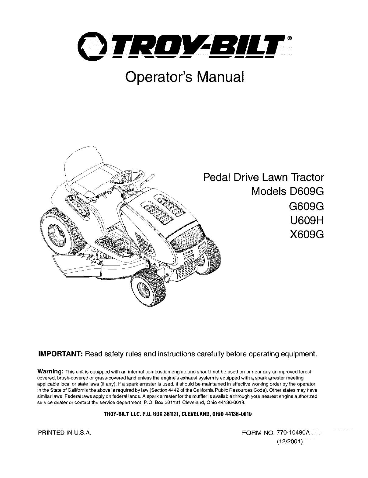 TROYBILT Lawn, Tractor Manual L0401103 TROYBILT Lawn, Tractor Owner's Manual, TROYBILT Lawn, Tractor installation guides