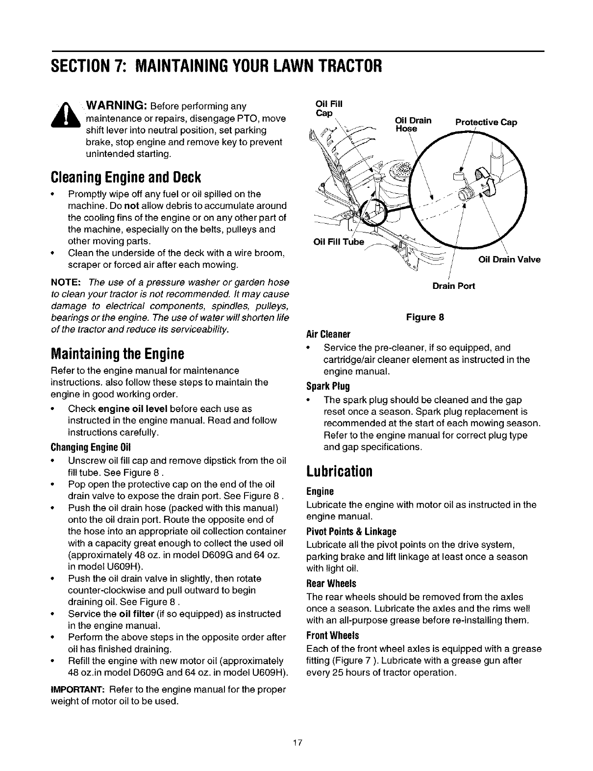 Maintaining Your Lawn Tractor .......................................................................... 17
