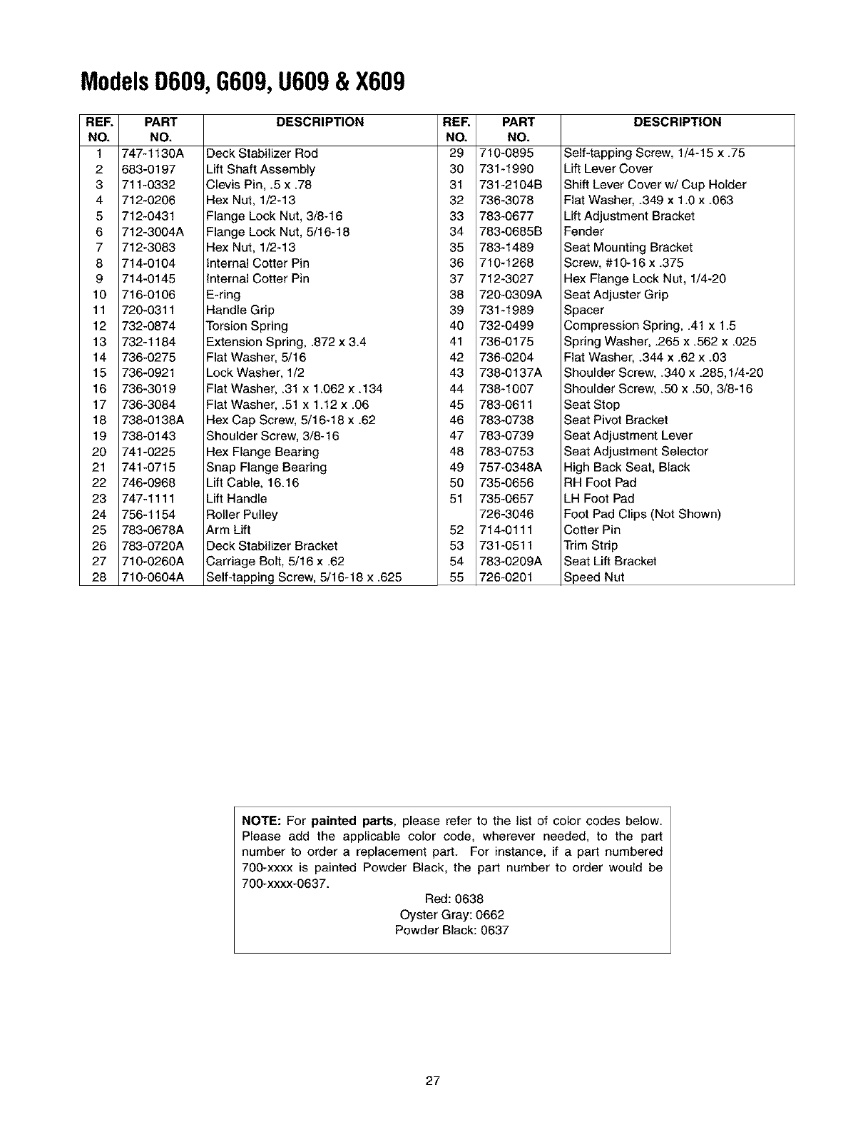 blades, blade adapters, grass bags, rider deck wheels, seats,