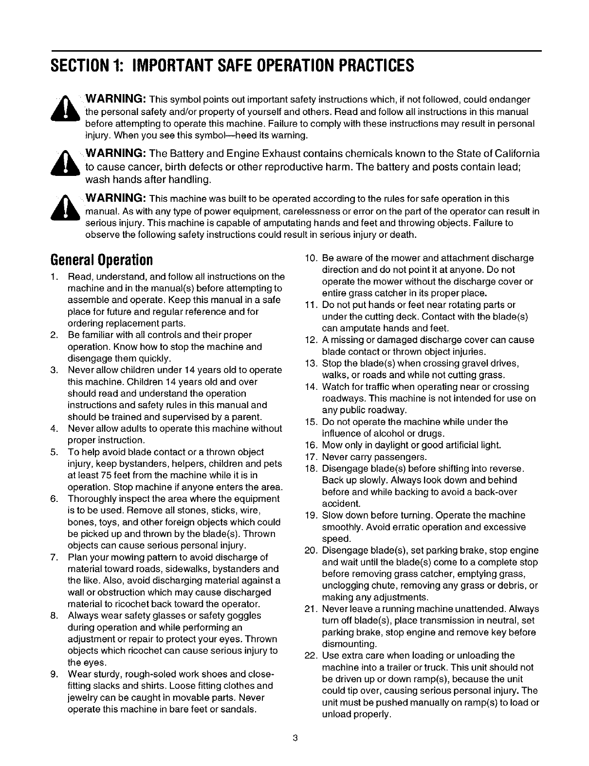 SECTION1: IMPORTANTSAFEOPERATIONPRACTICES