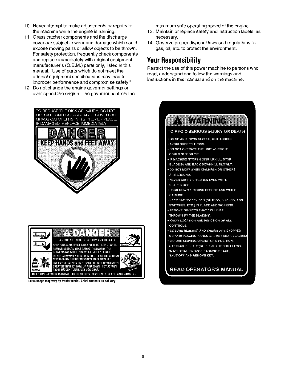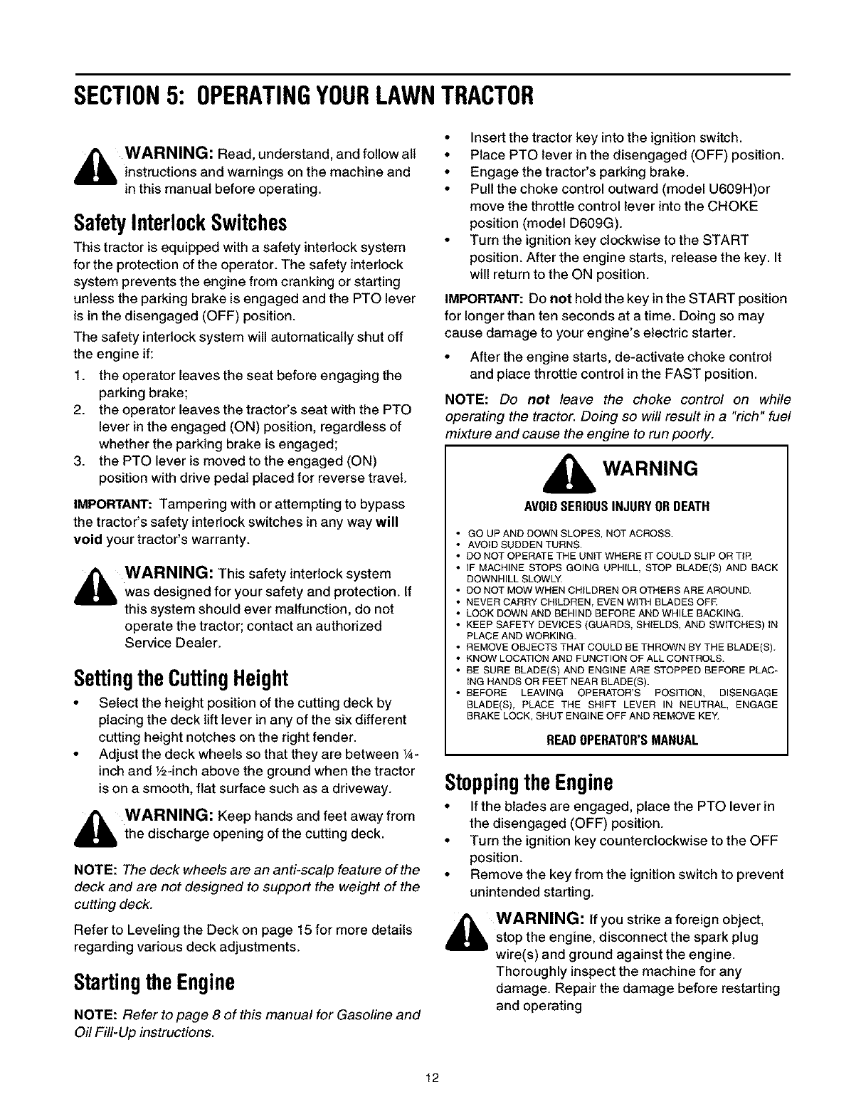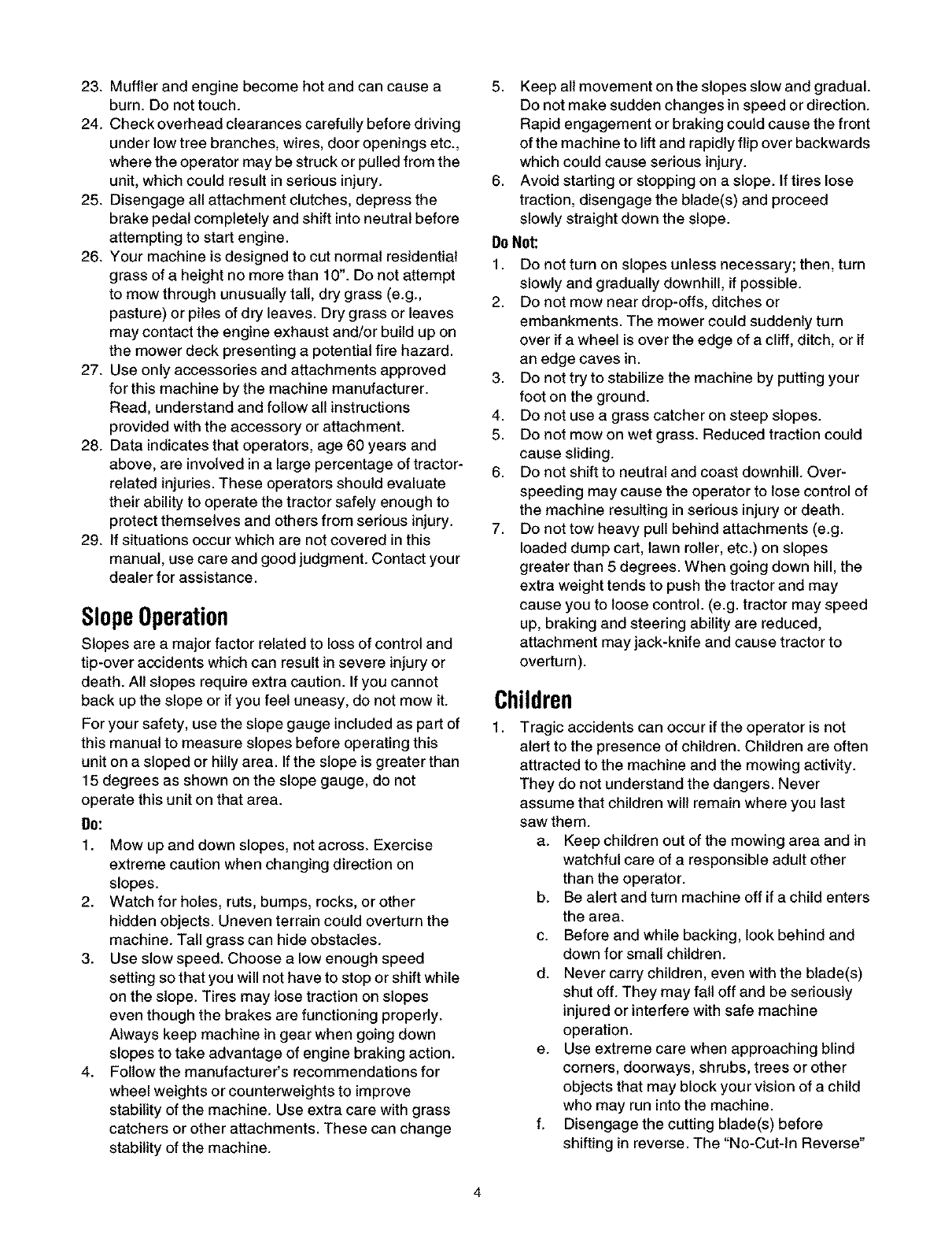 This Operator's Manual is an important part of your new lawn tractor. It will help you assemble, prepare and