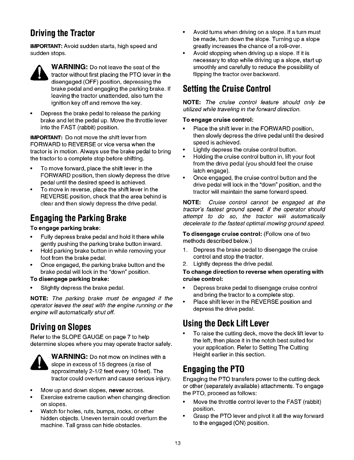 MTD 13AG609G063 User Manual LAWN TRACTOR Manuals And Guides L0401103