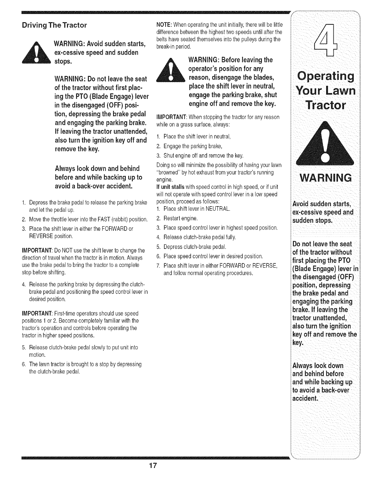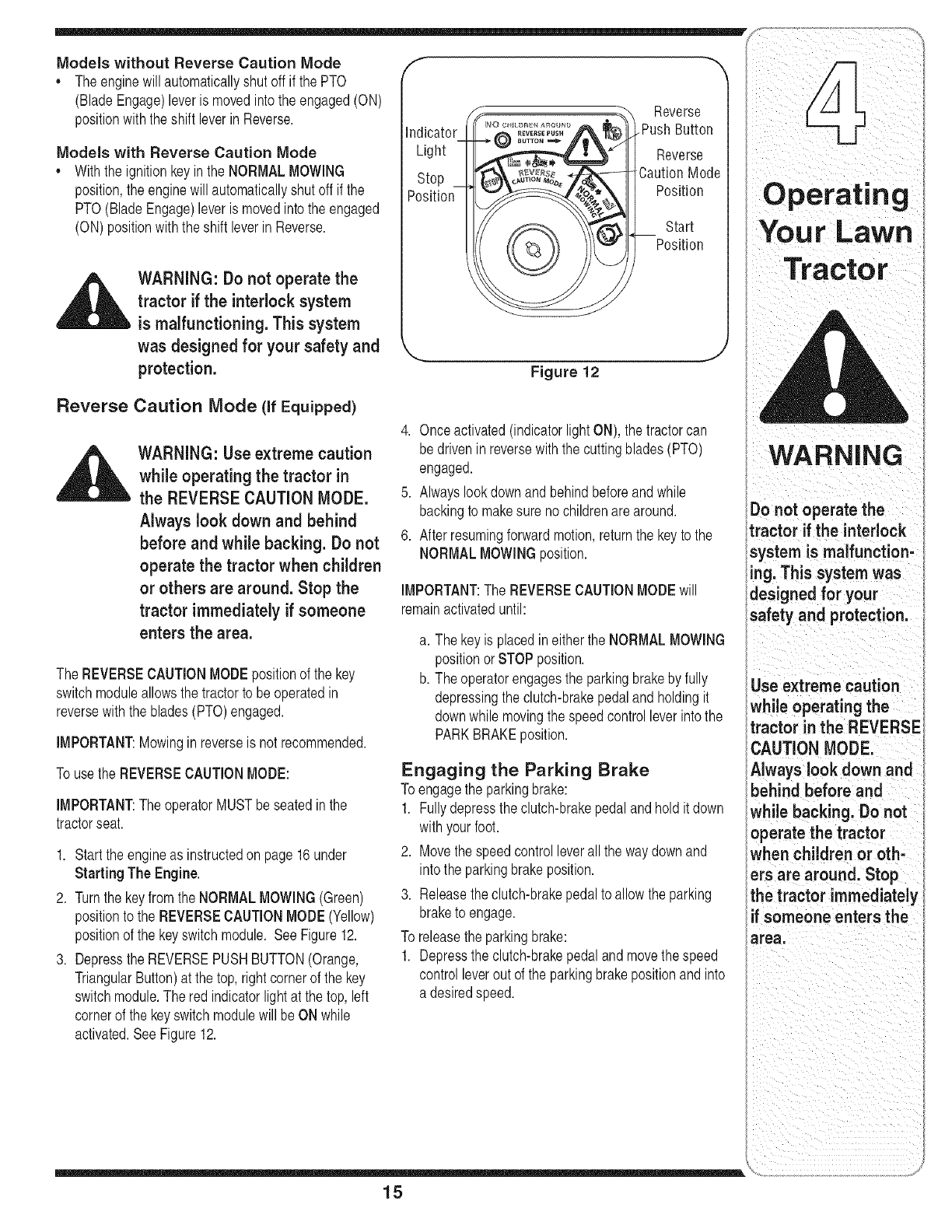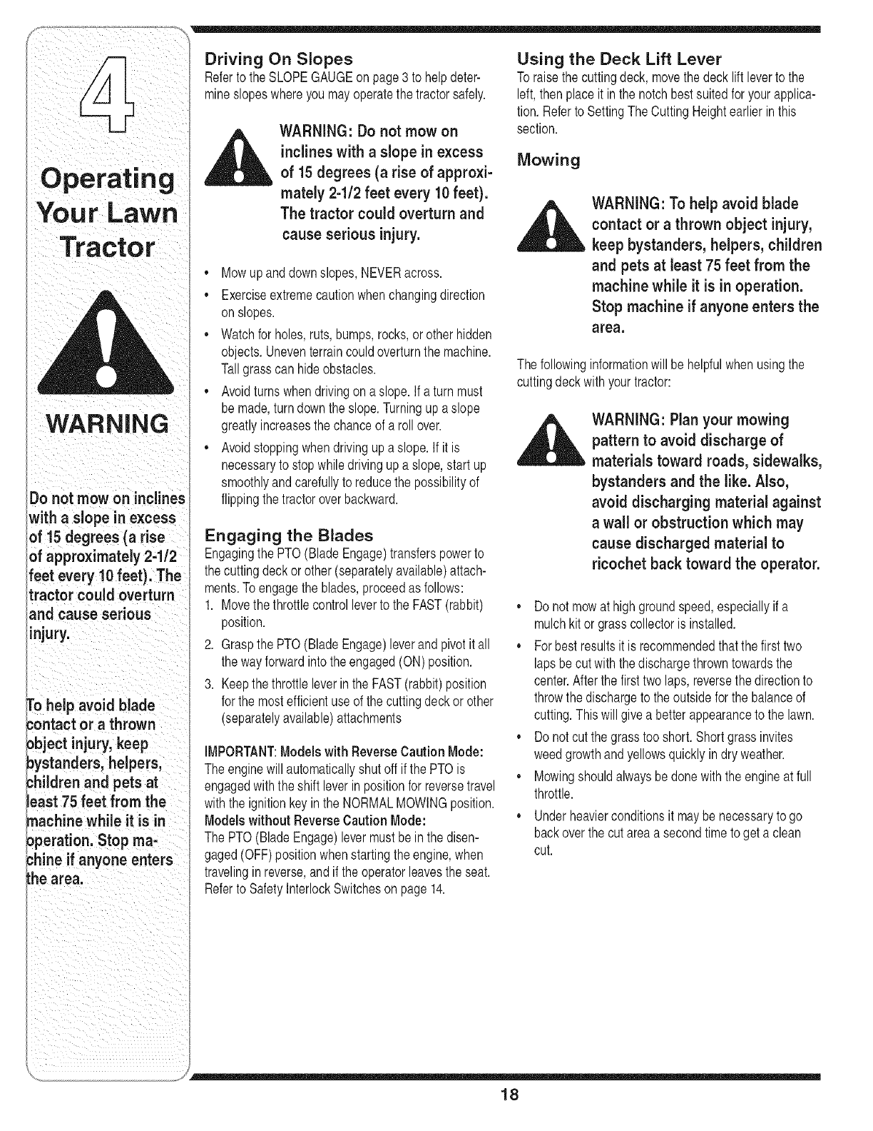 Operating Your Lawn Tractor ........................... 12