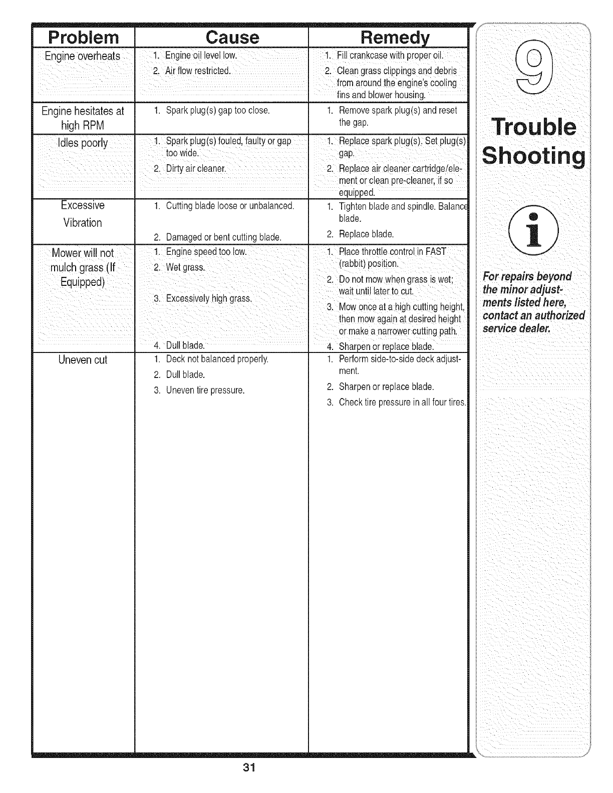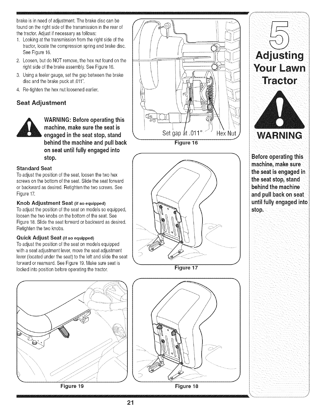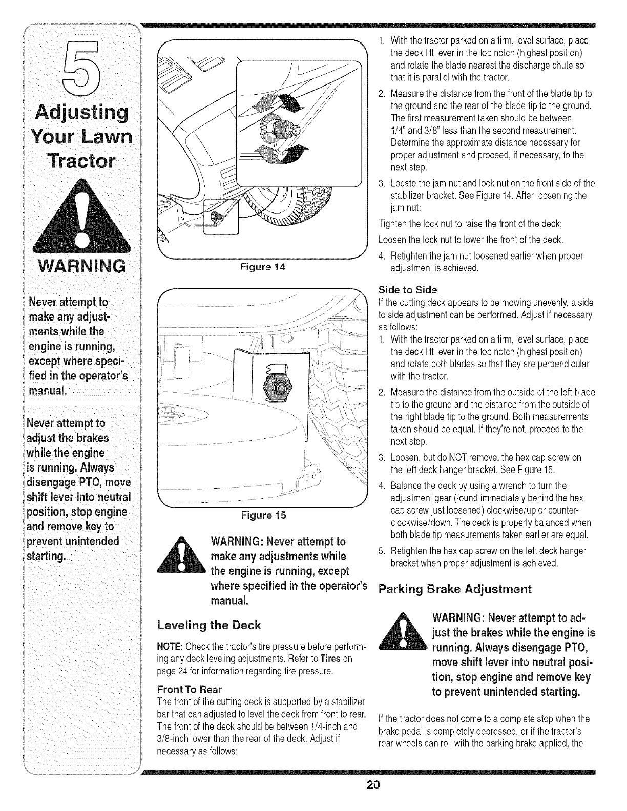 Adjusting Your Lawn Tractor ............................ 20