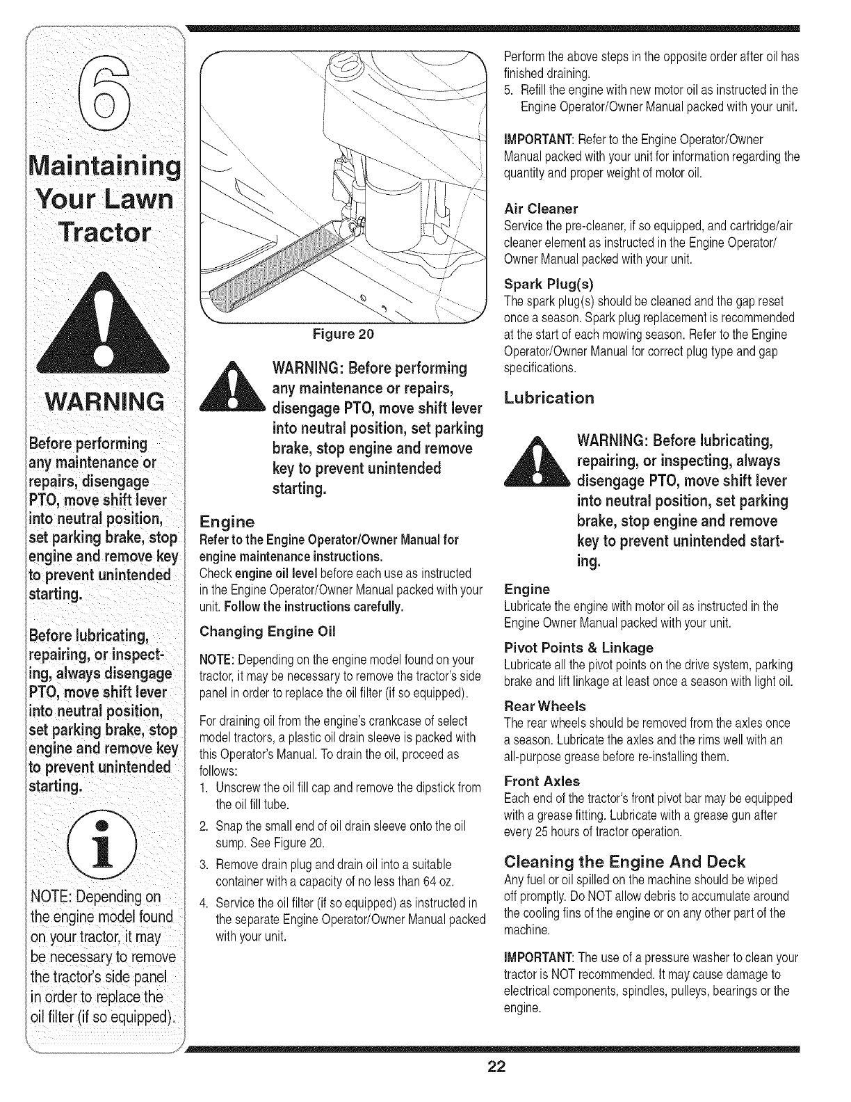 Maintaining Your Lawn Tractor ........................ 22