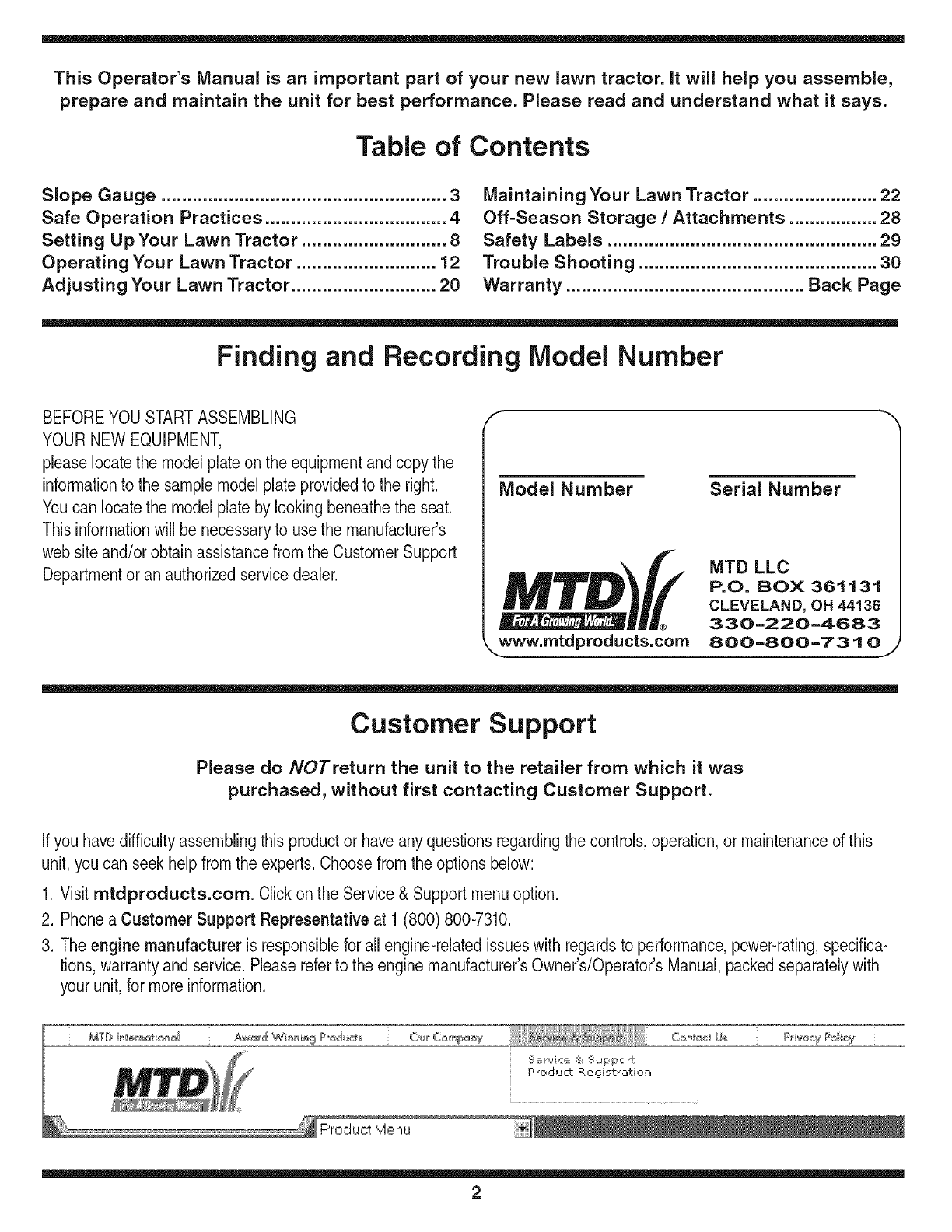 1. Visit mtdproducts.com. Click on the Service & Support menu option.