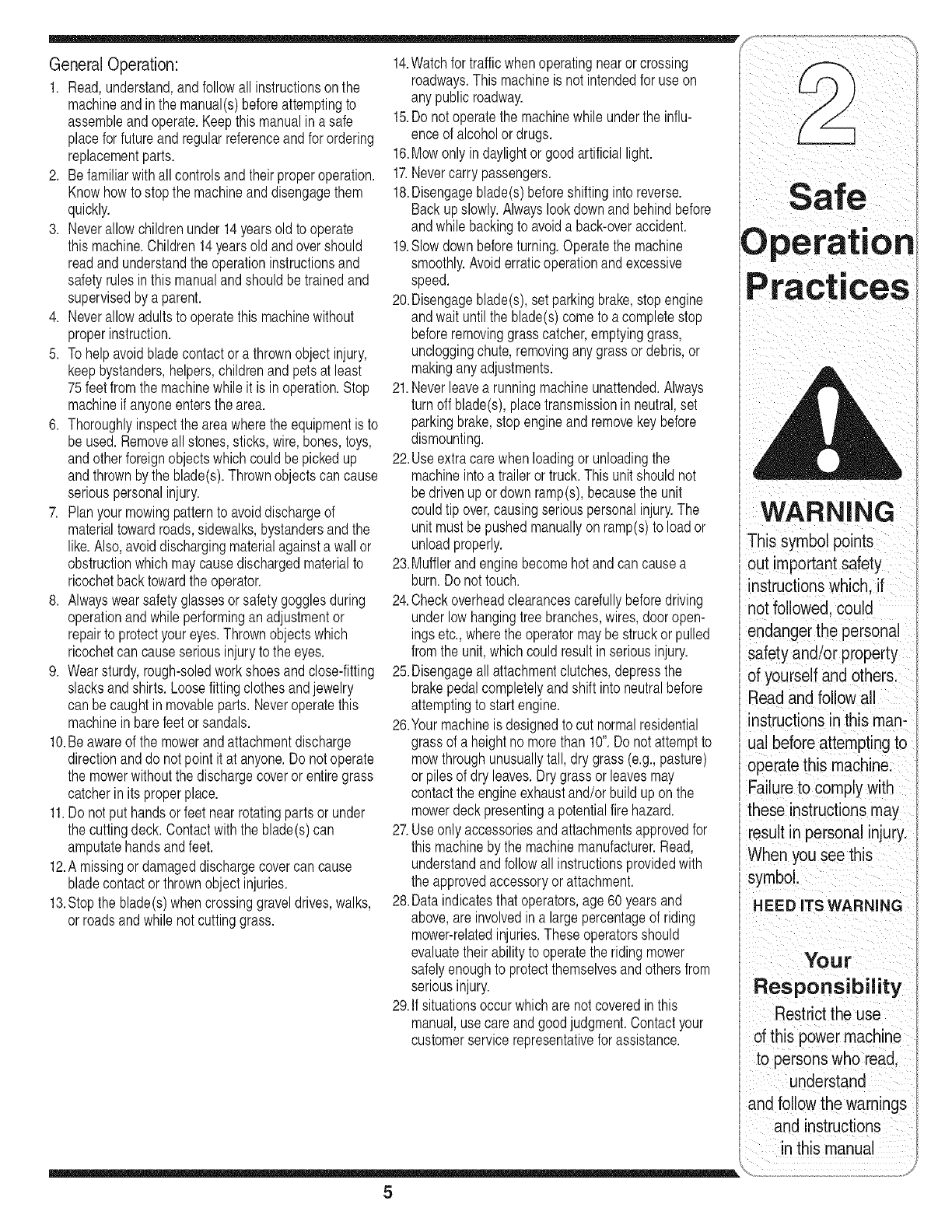 This Operator's Manual is an important part of your new lawn tractor, it will help you assemble,