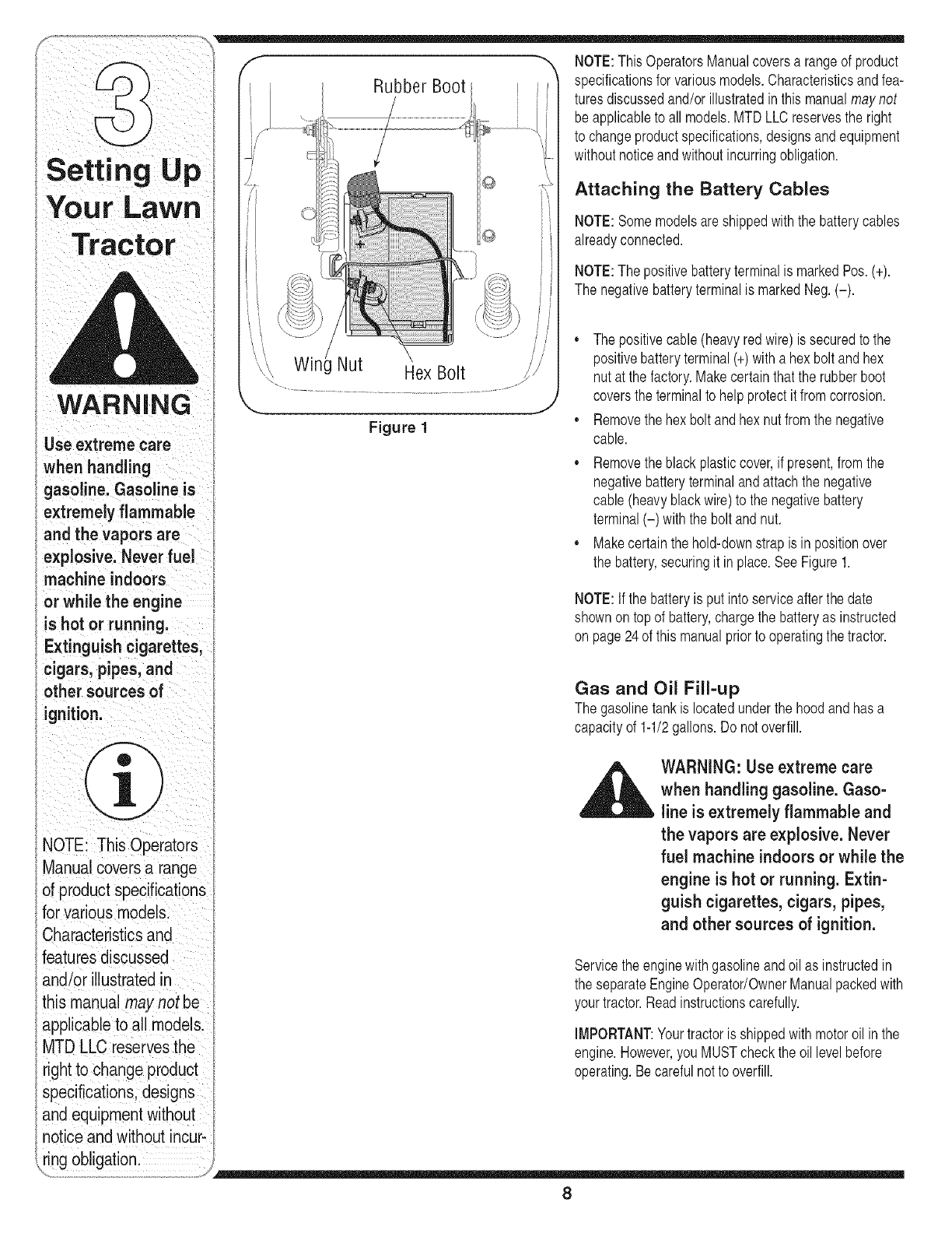 Setting Up Your Lawn Tractor ............................ 8