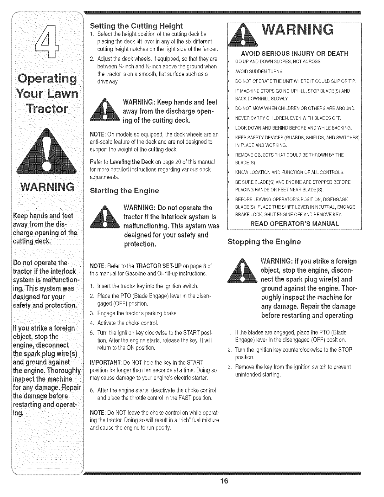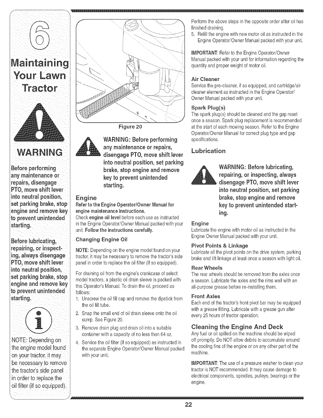 tions, warranty and service. Please referto the engine manufacturer'sOwner's/Operator's Manual,packed separatelywith