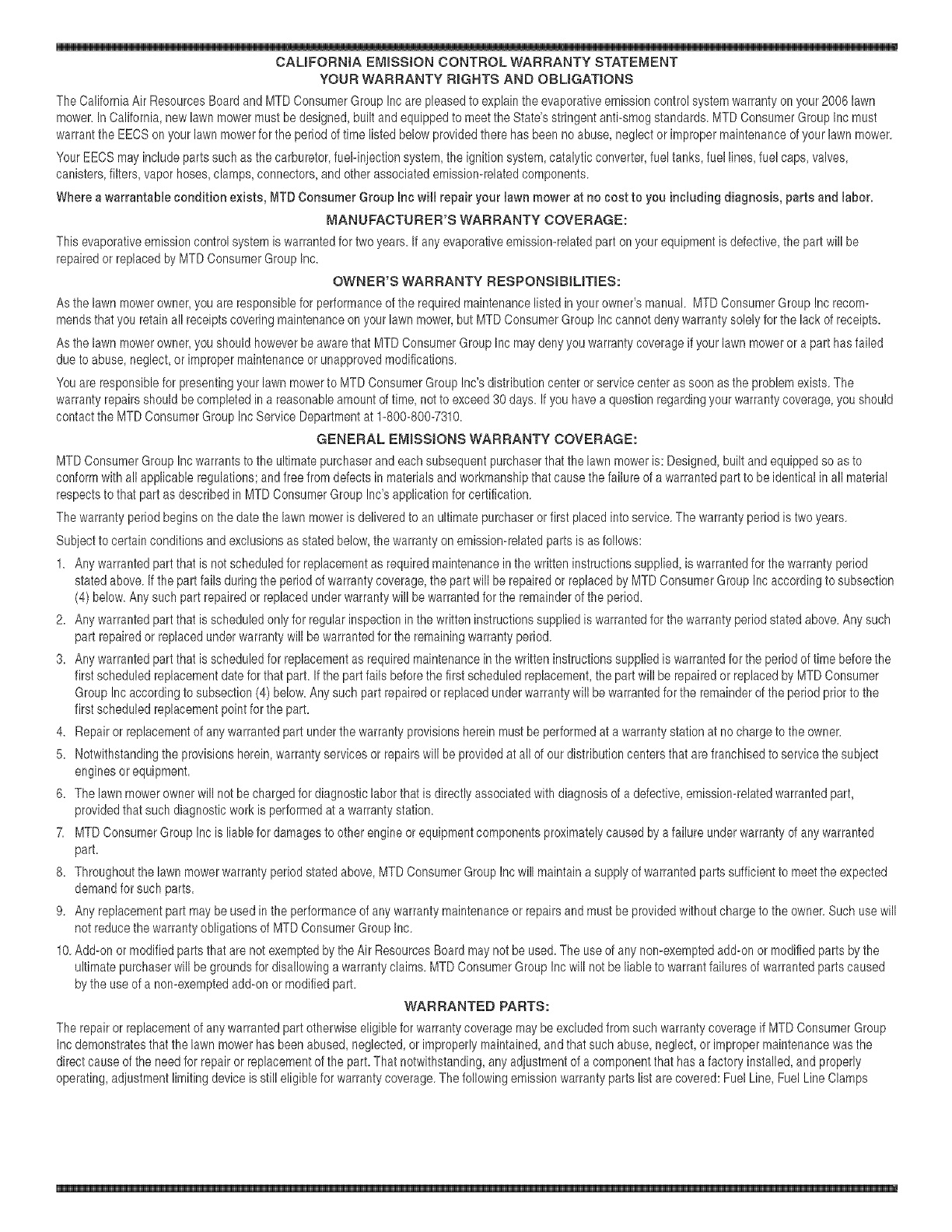 8. Throughoutthe lawnmowerwarrantyperiodstated above,MTDConsumerGroupIncwill maintaina supplyofwarrantedpartssufficientto meetthe expected