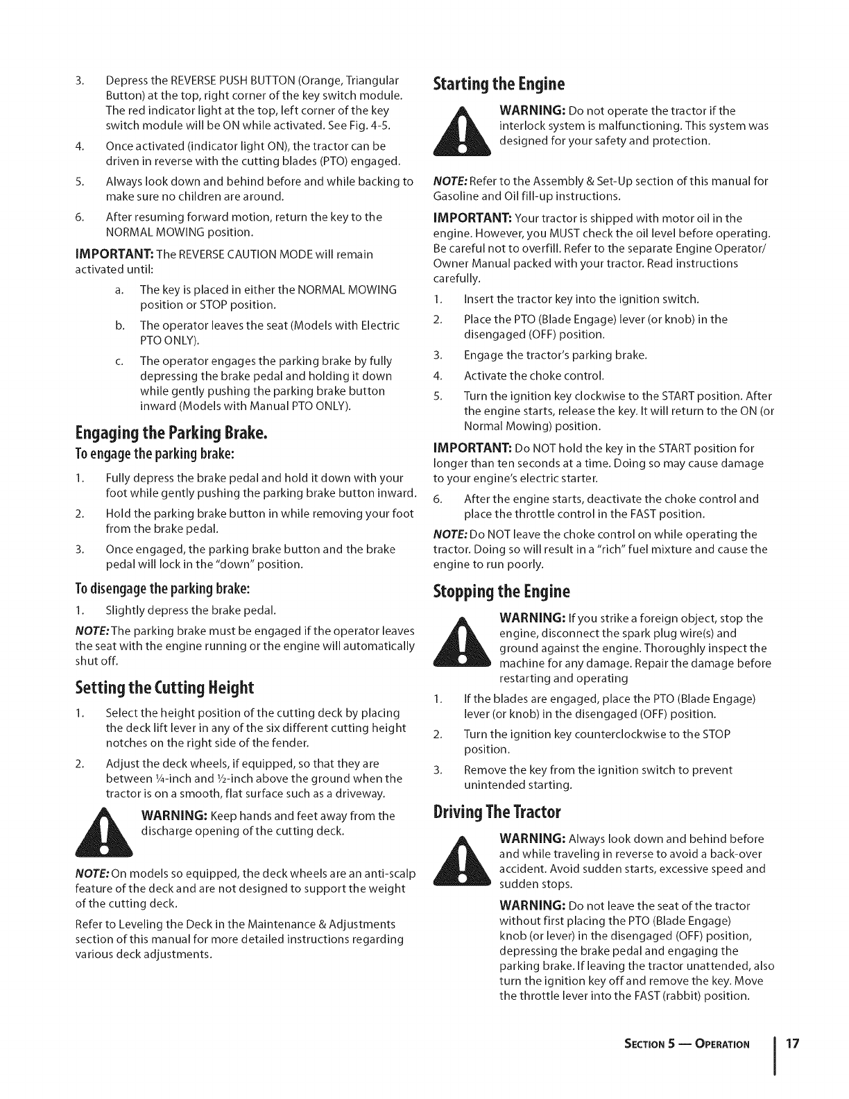 warranty and service. Please refer to the engine manufacturer's
