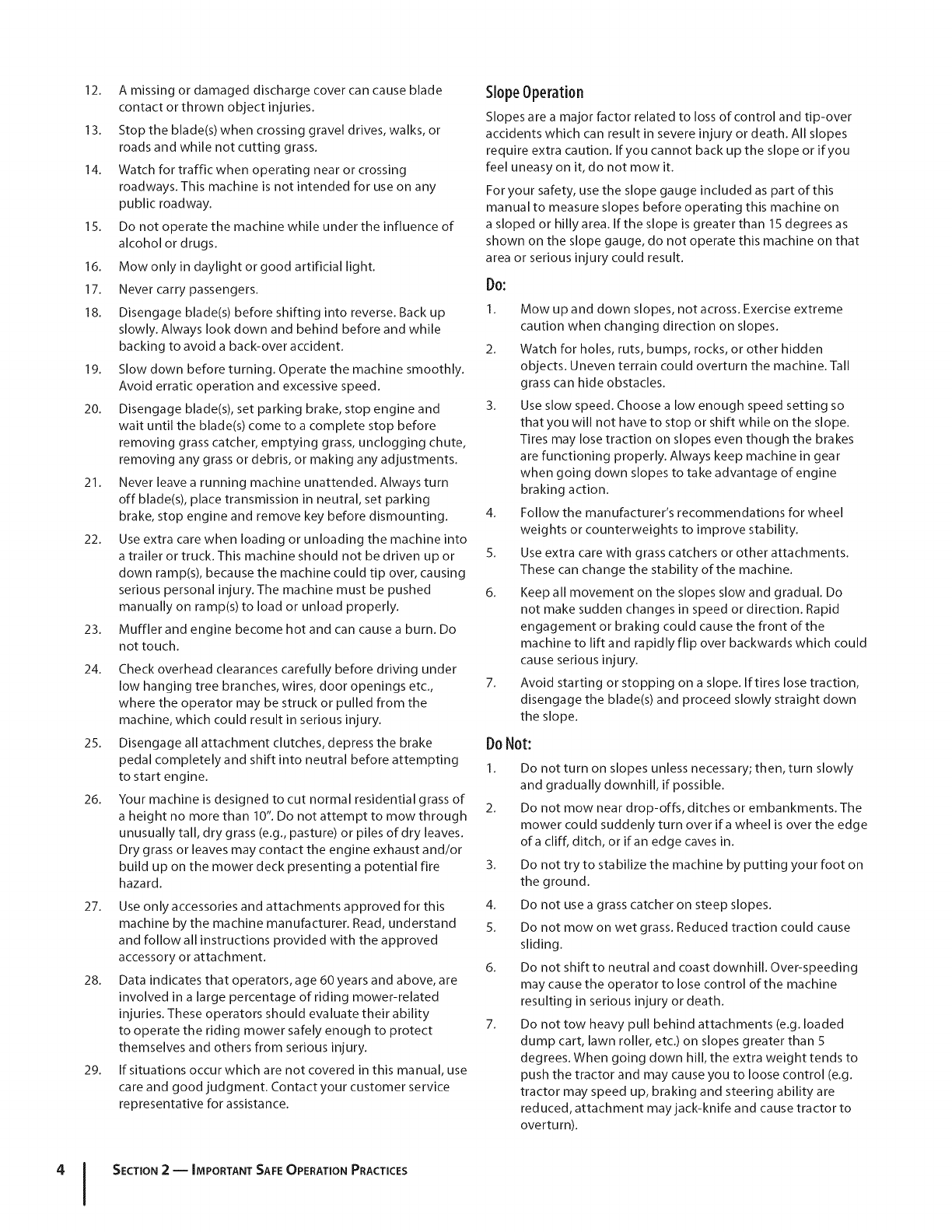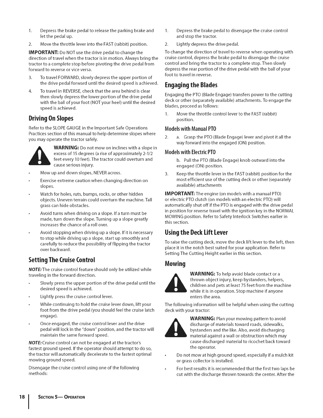 Safe Operation Practices • Set-Up • Operation • Maintenance • Service • Troubleshooting • Warranty