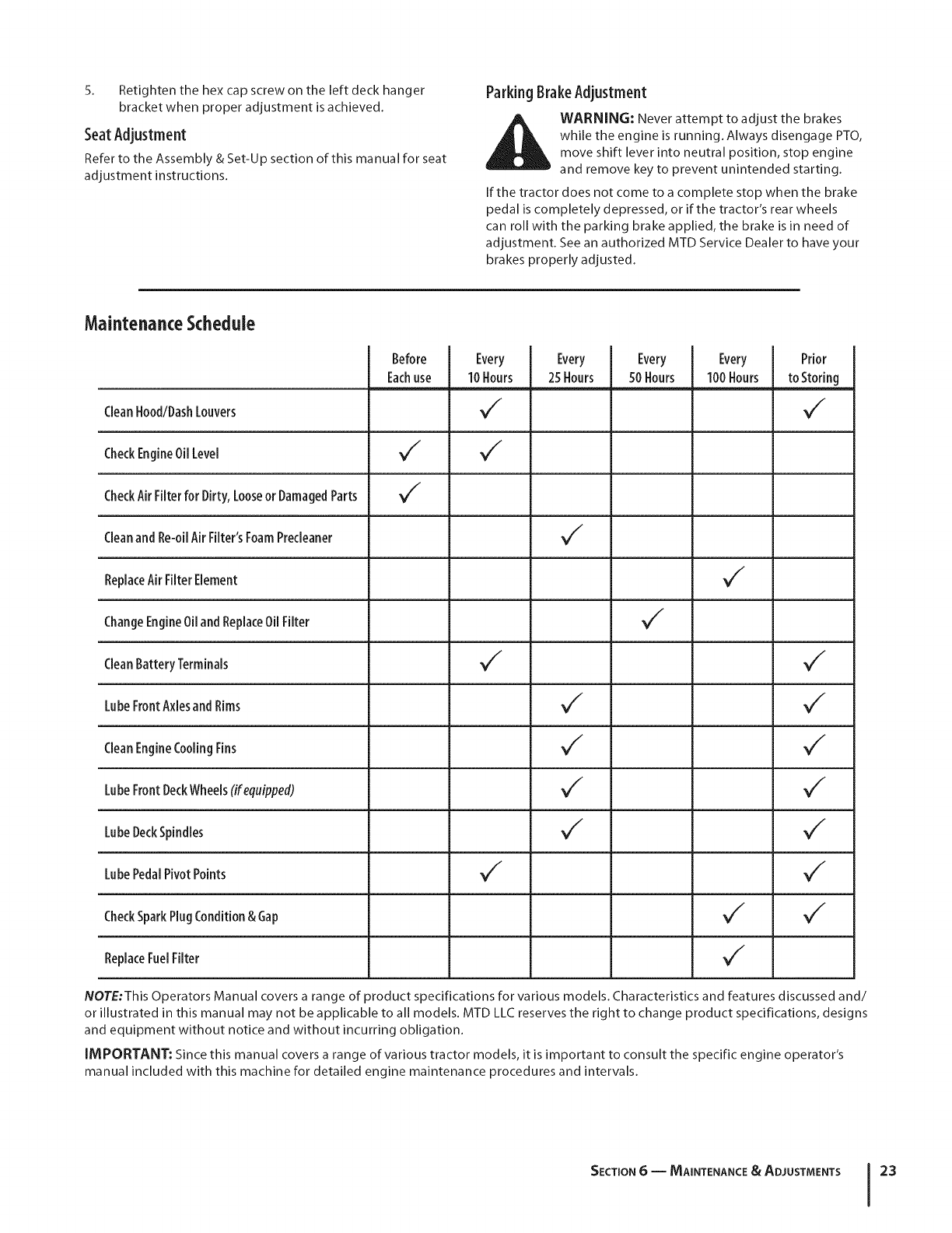 in this manual may not be applicable to all models. MTD LLC