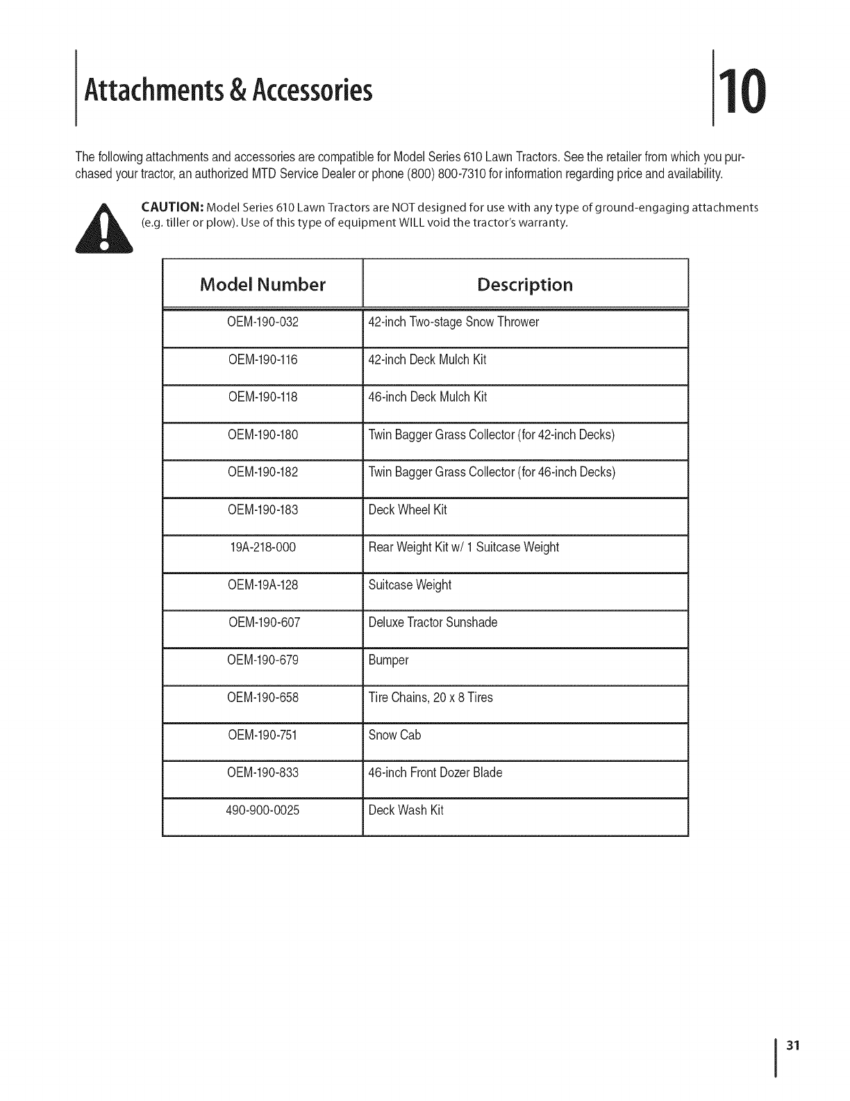 Attachments-- MTD warrants attachments for this product against