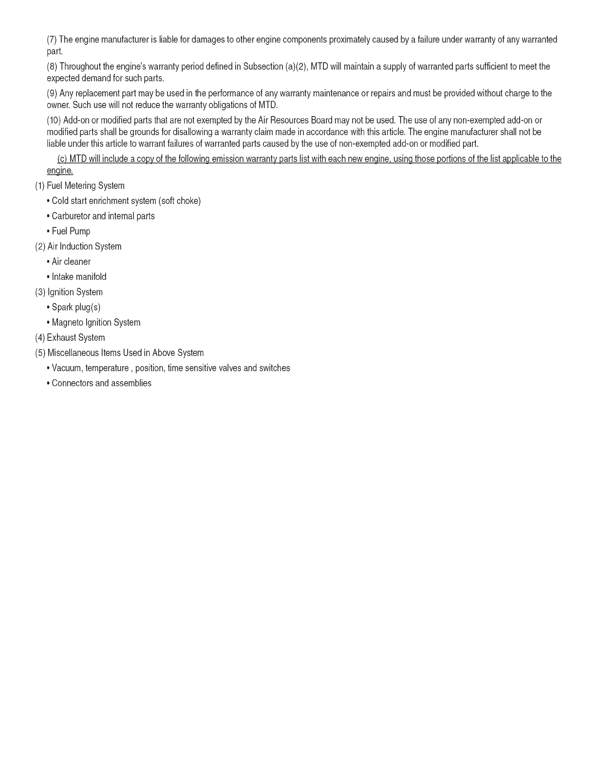"MTD" warrants this product (excluding its Normal WearParts and