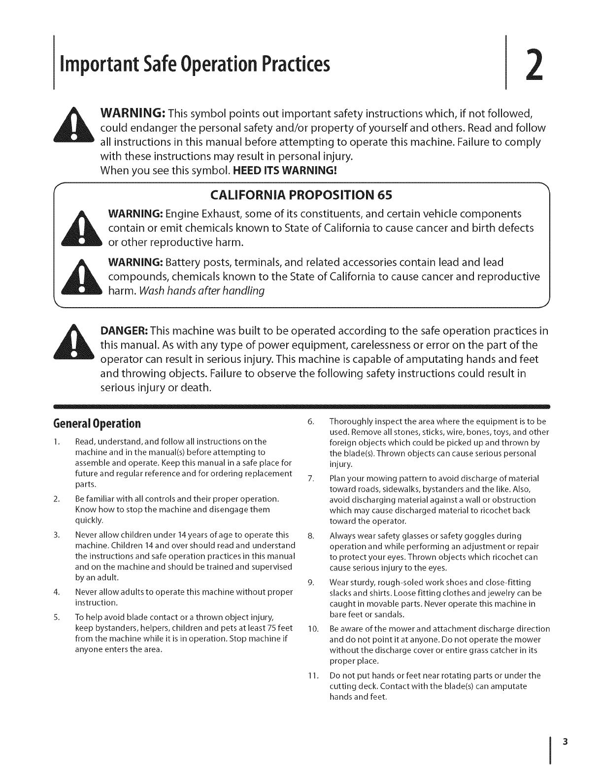 Safe Operation Practices ........................................ 3