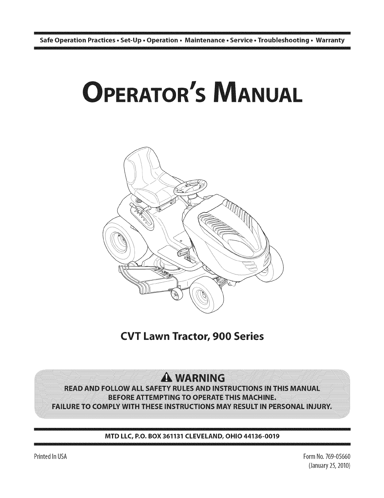 MTD LLC, P.O. BOX 361131 CLEVELAND, OHiO 44136=0019; Phone: 1=800=800=7310, 1=330=220=4683