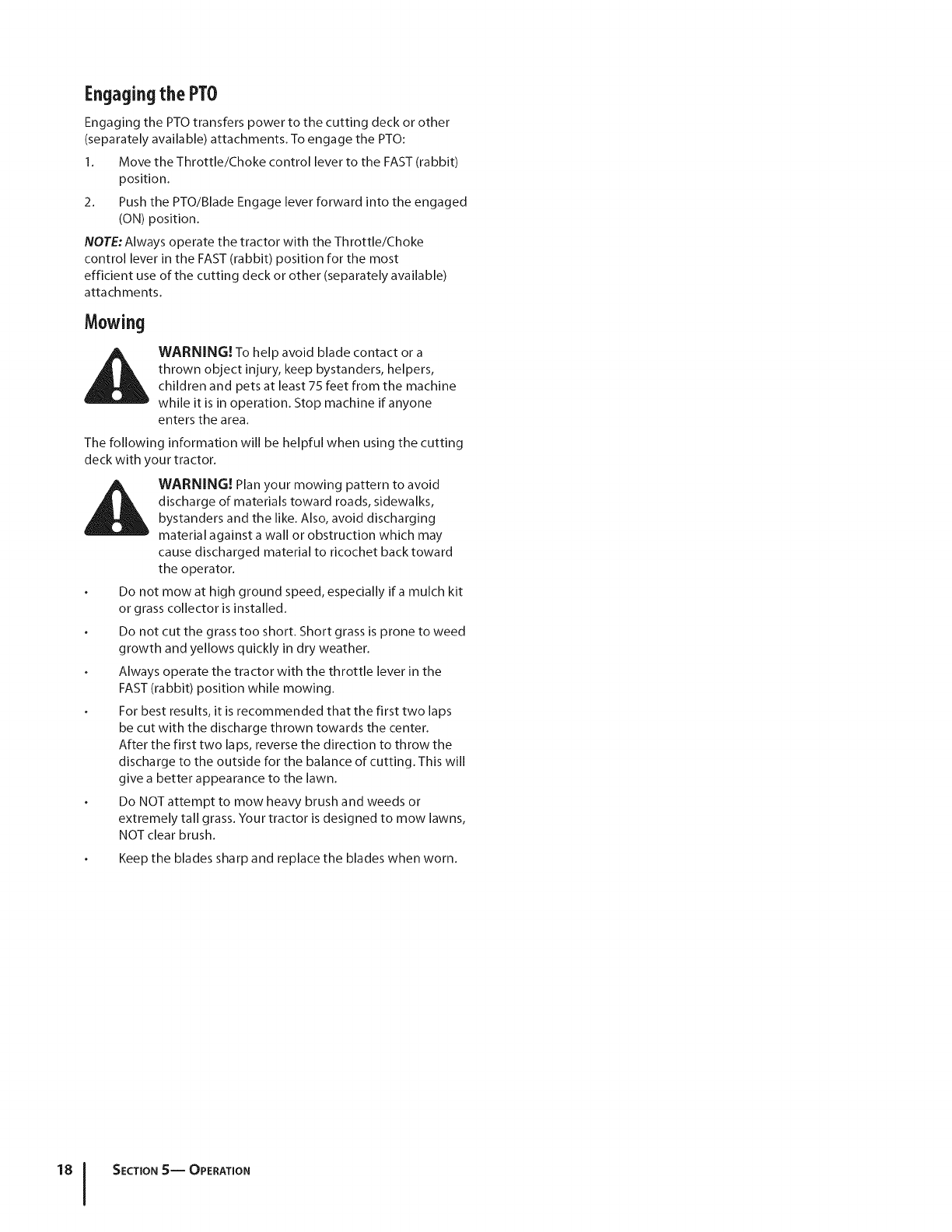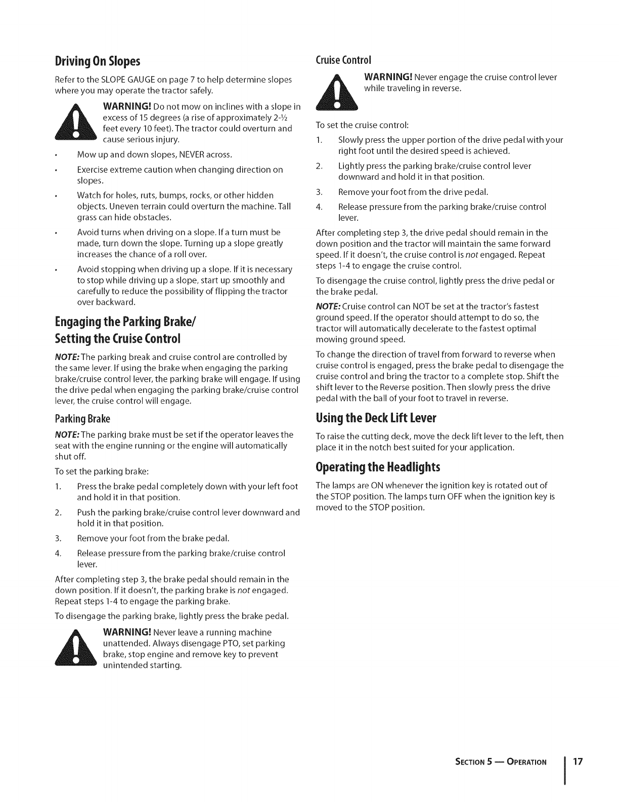 Safe Operation Practices • Set-Up • Operation • Maintenance • Service • Troubleshooting • Warranty
