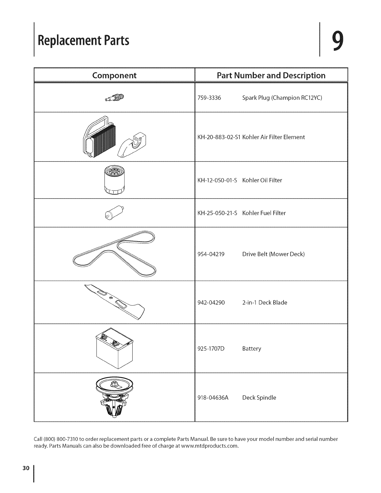 Contact MTD Products Limited, Kitchener, ON N2G4J1, or call 1-800-
