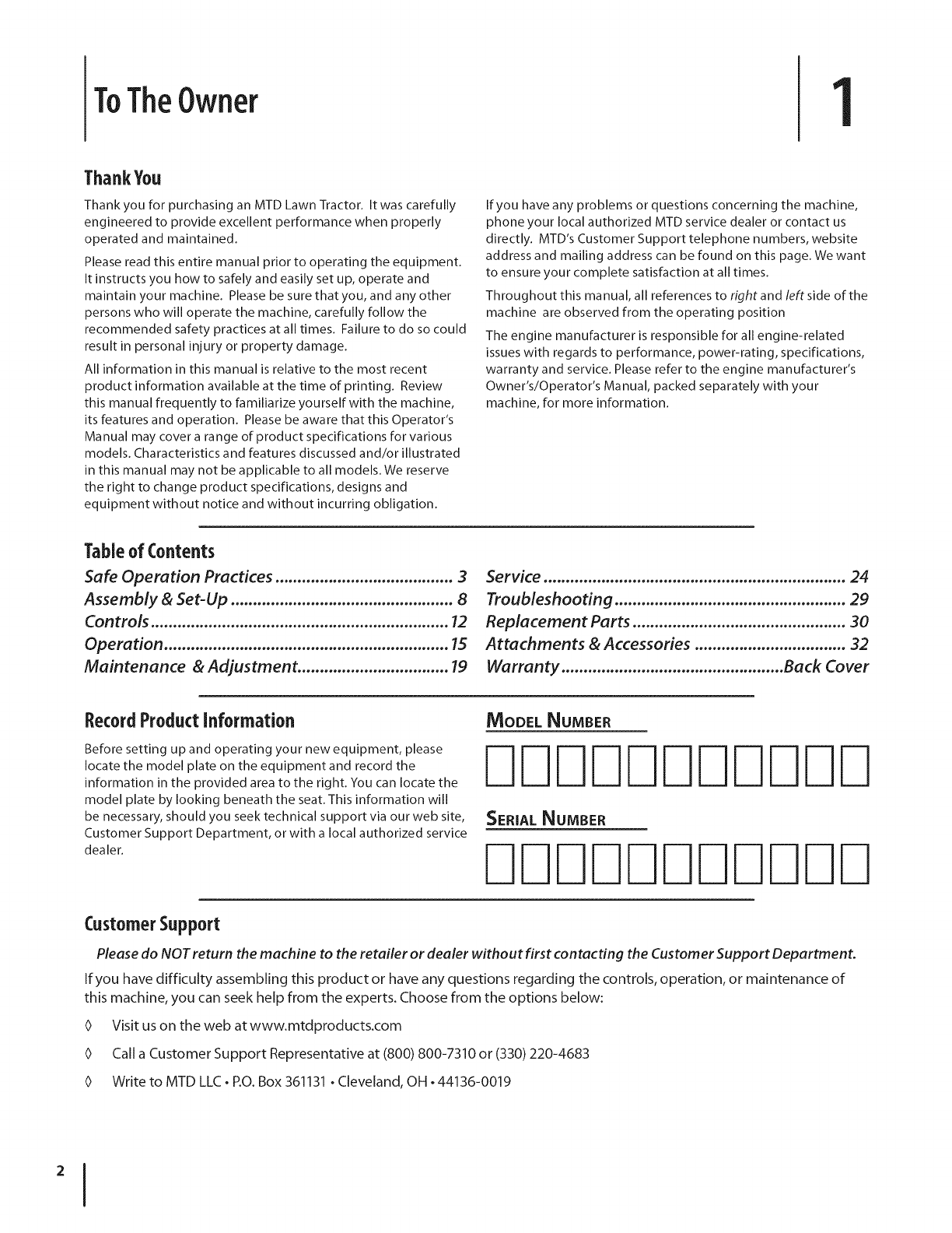 Thank you for purchasing an MTD Lawn Tractor. It was carefully