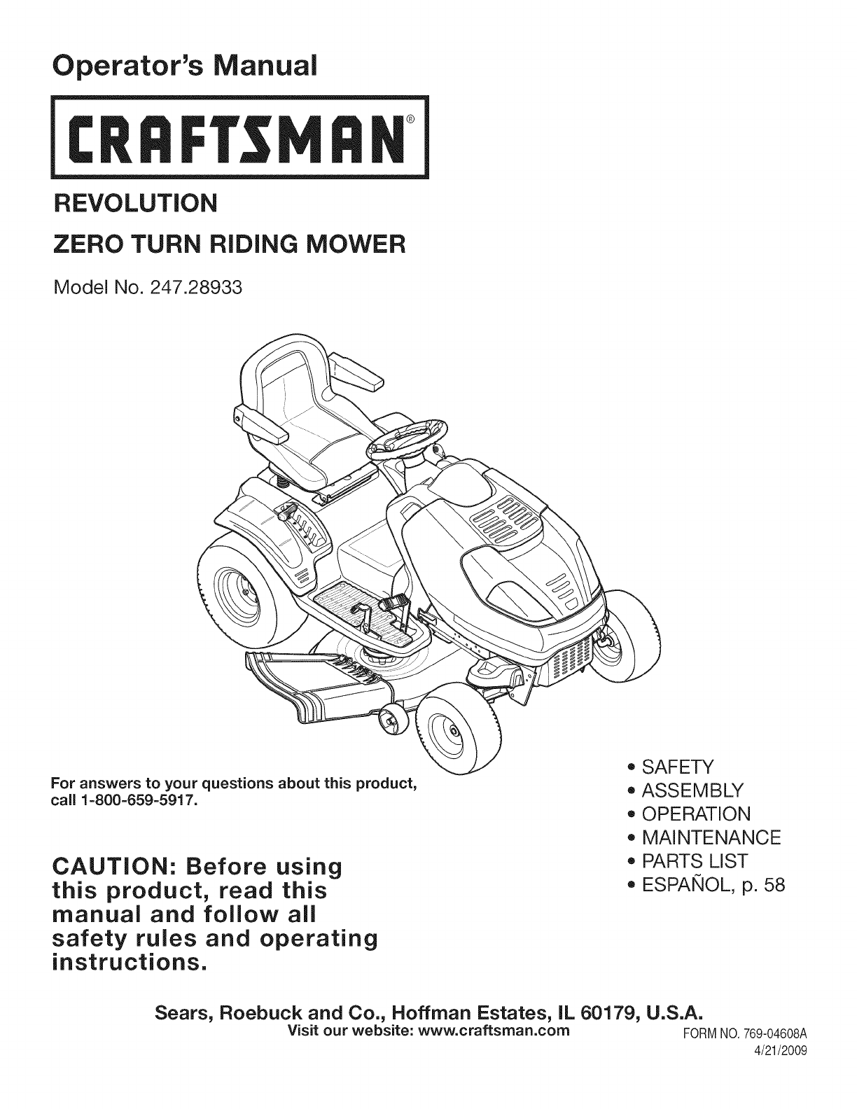 Visit our website: www.craftsman.com FORMNO.769-04608A