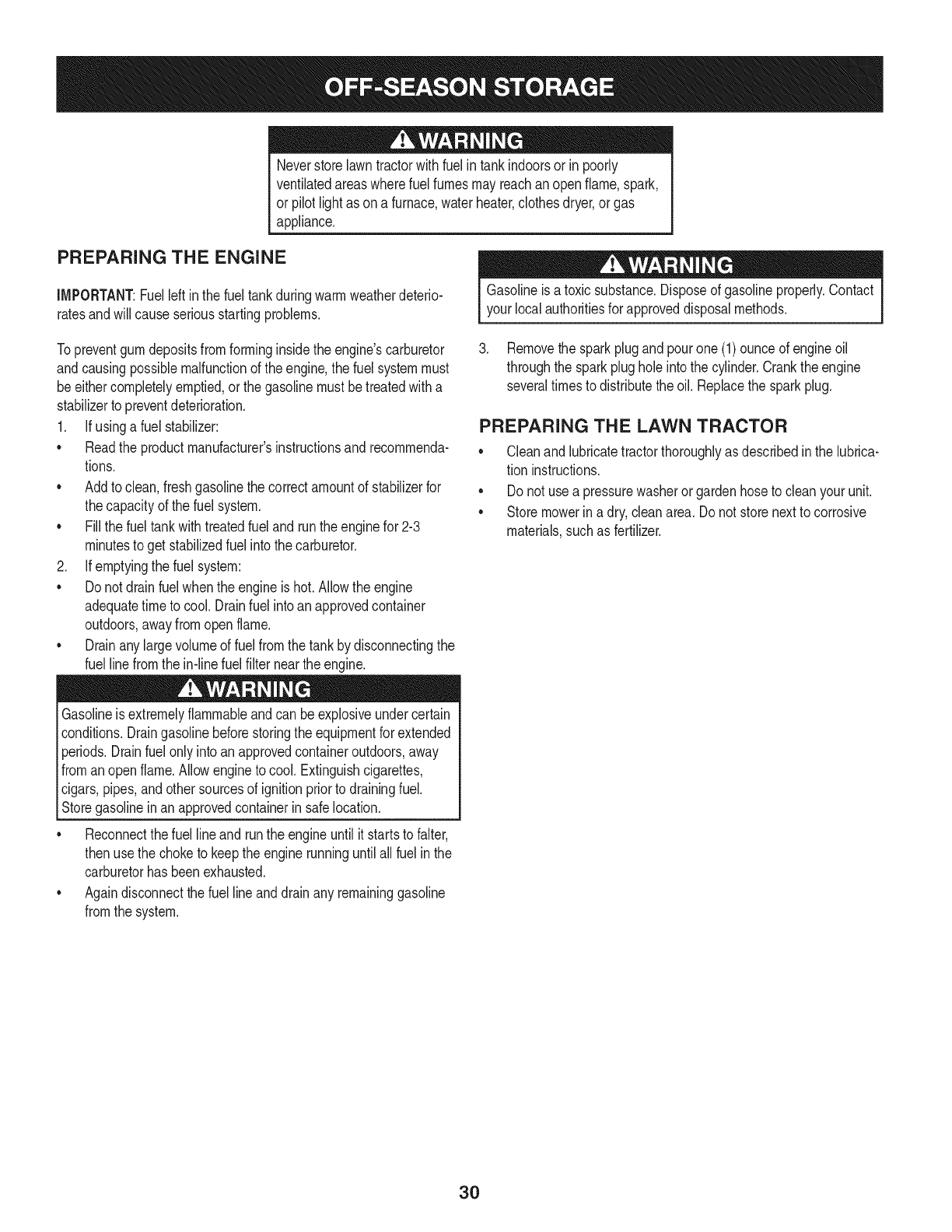 Off-SeasonStorage................... Page30