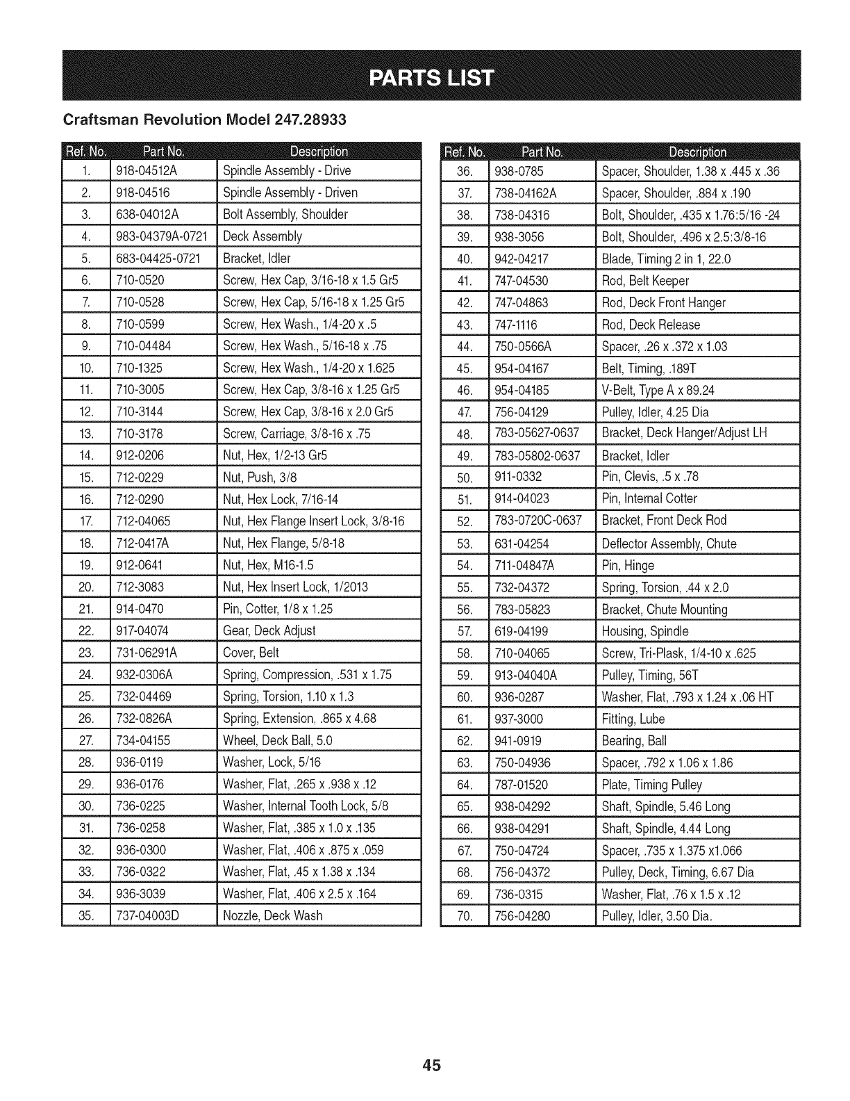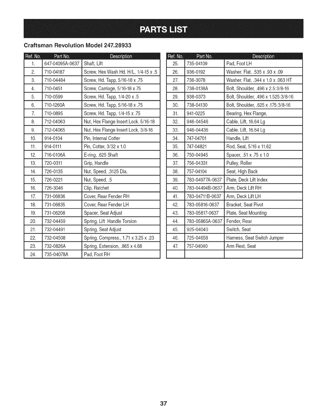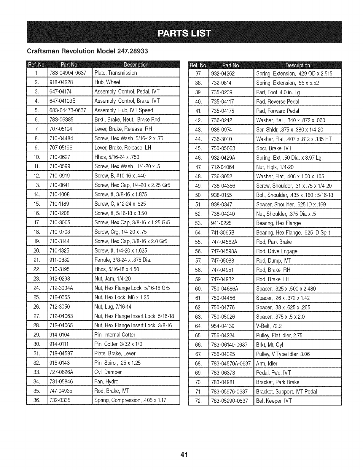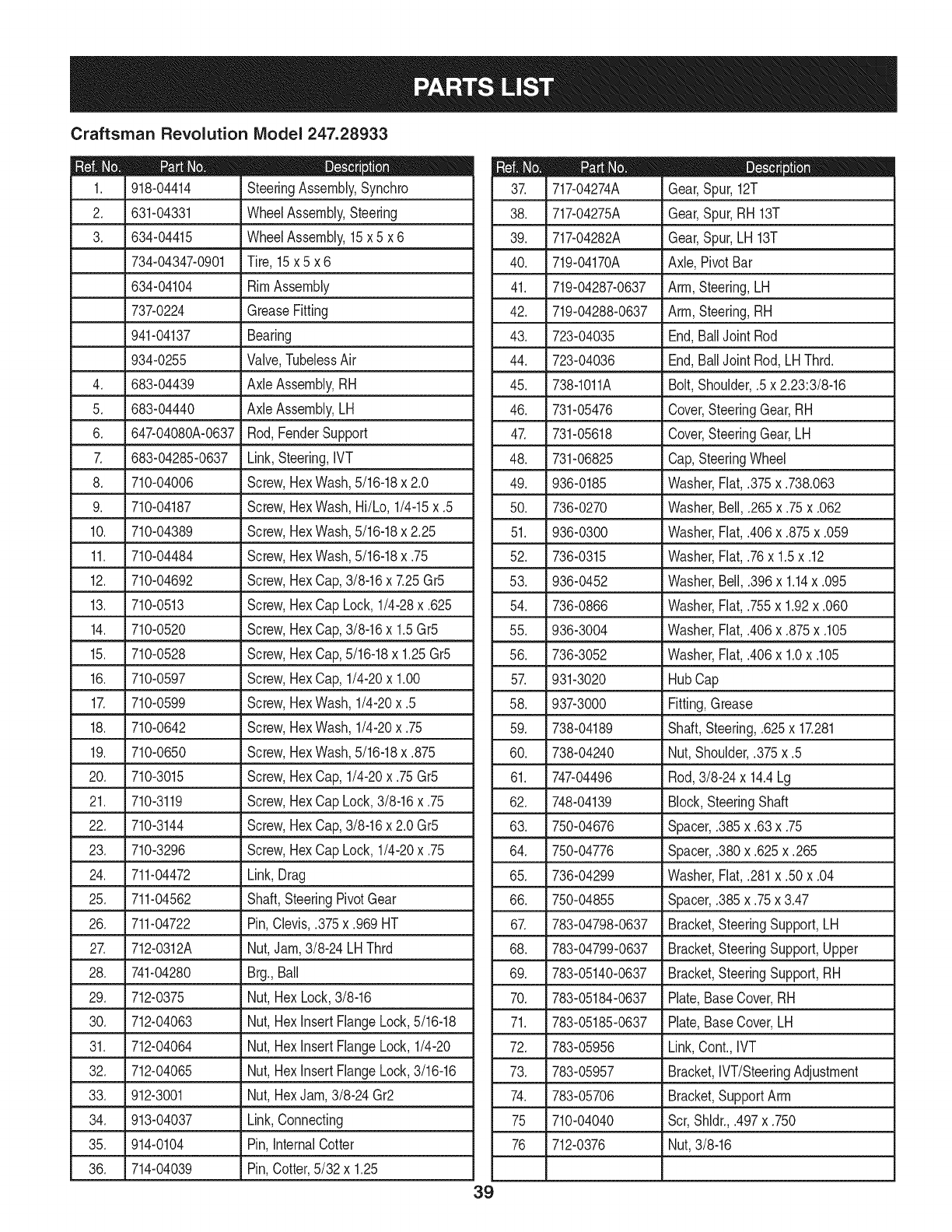 PartsList......................... Pages32-53