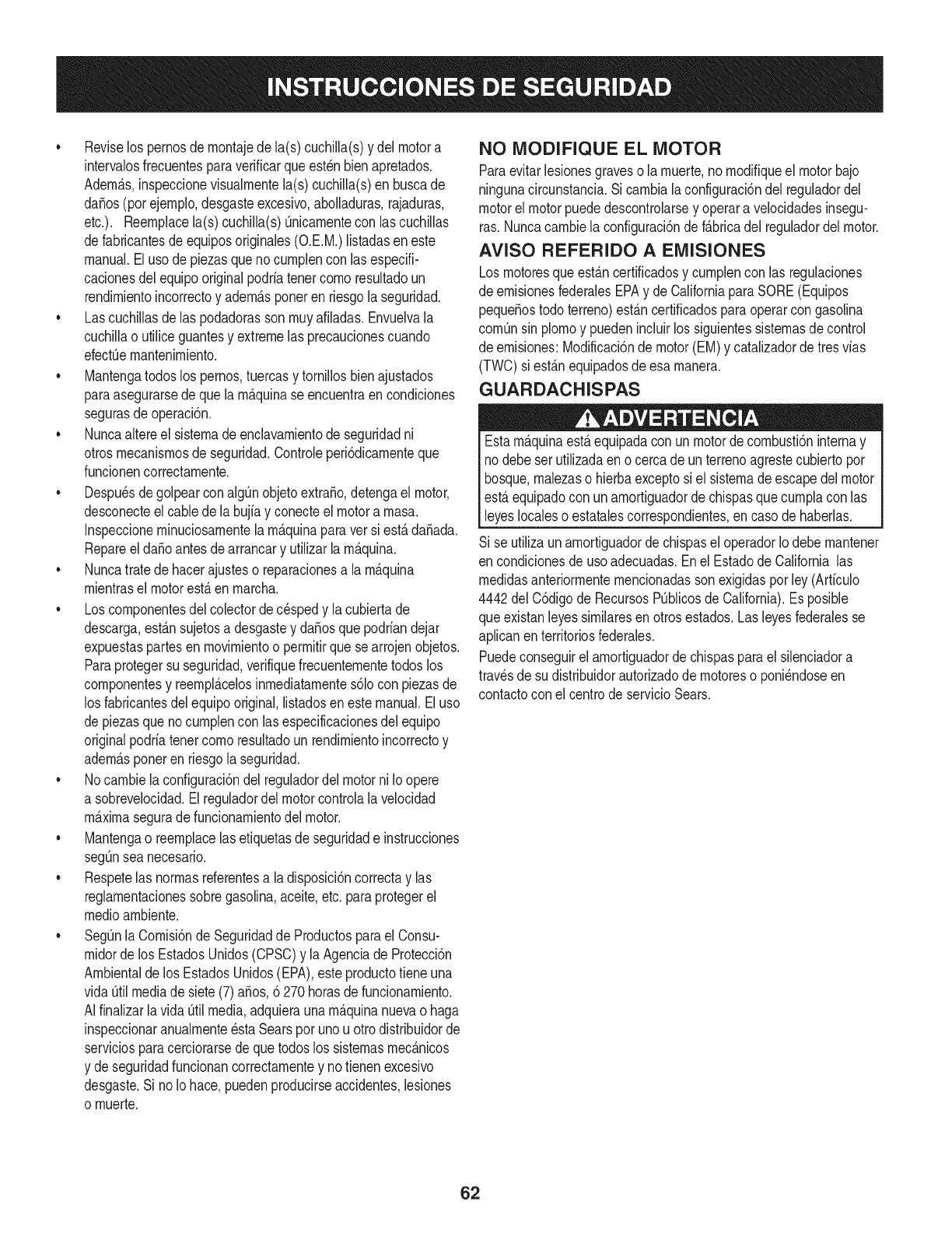 est6 certificado deben exhibir la informaci6n relacionada con el perJodo de duraci6n de las emisiones y la clasificaci6n de aire. Sears,