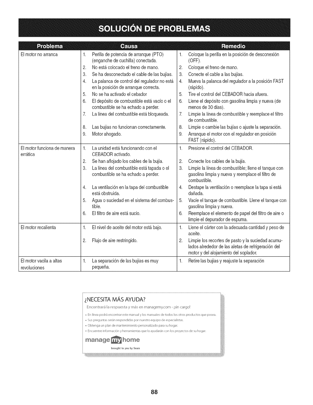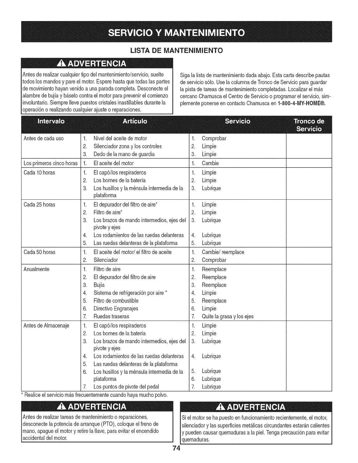 Por ejemplo, una cortadora de c6sped tJpica que se empuja desde atrAs se usa entre 20 y 25 horas por afio. Por Io tanto, el Periodo