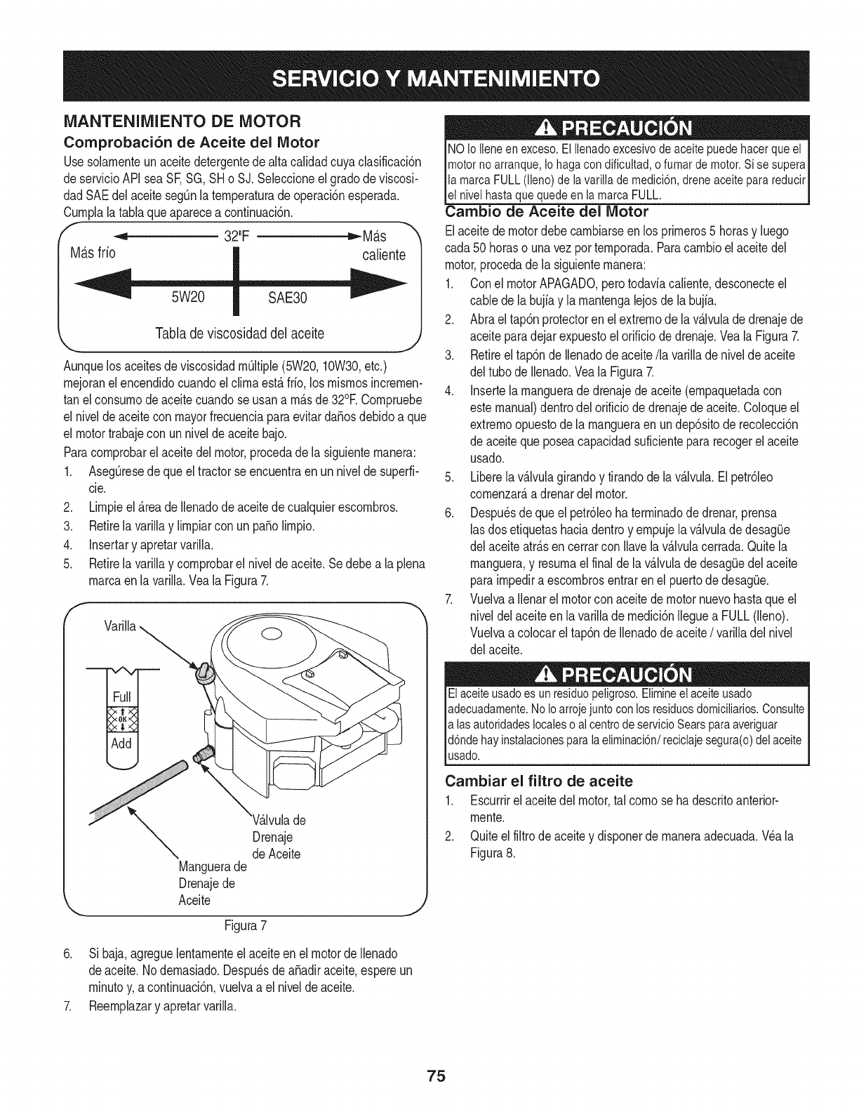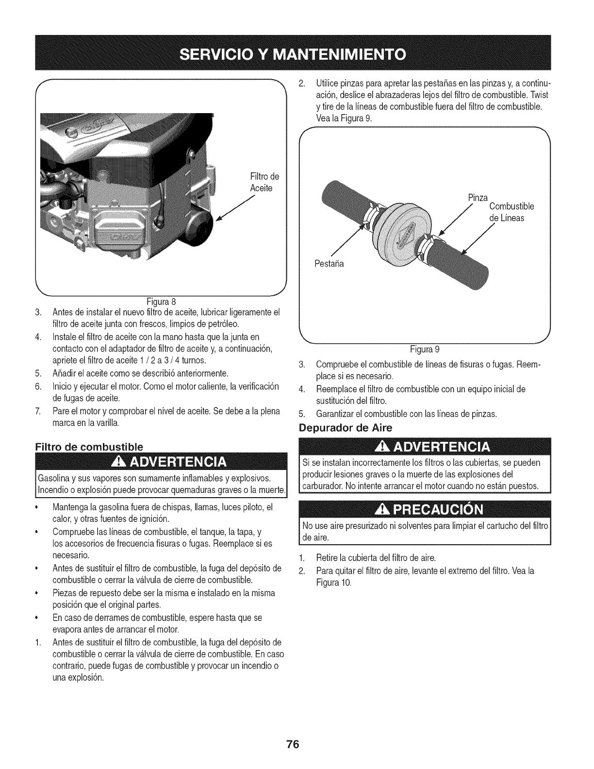 Para los motores con desplazamiento inferior a 225 cc, Categoria C = 125 horas, B = 250 horas y A = 500 horas.