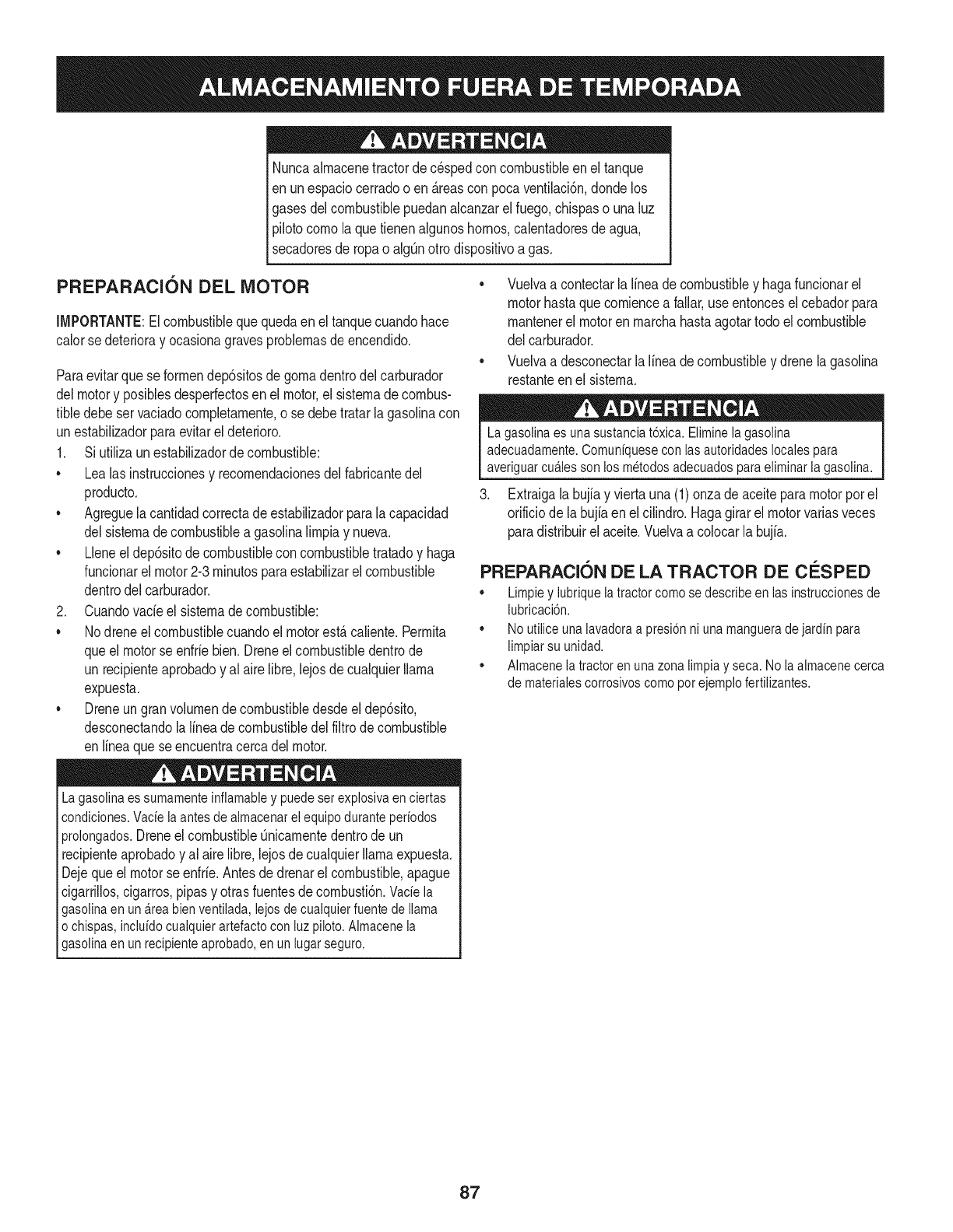 storage,failuretousethepropergradeandamountofengineoil,failuretokeepthedeckclearofflammabledebris,orfailuretomaintainthe