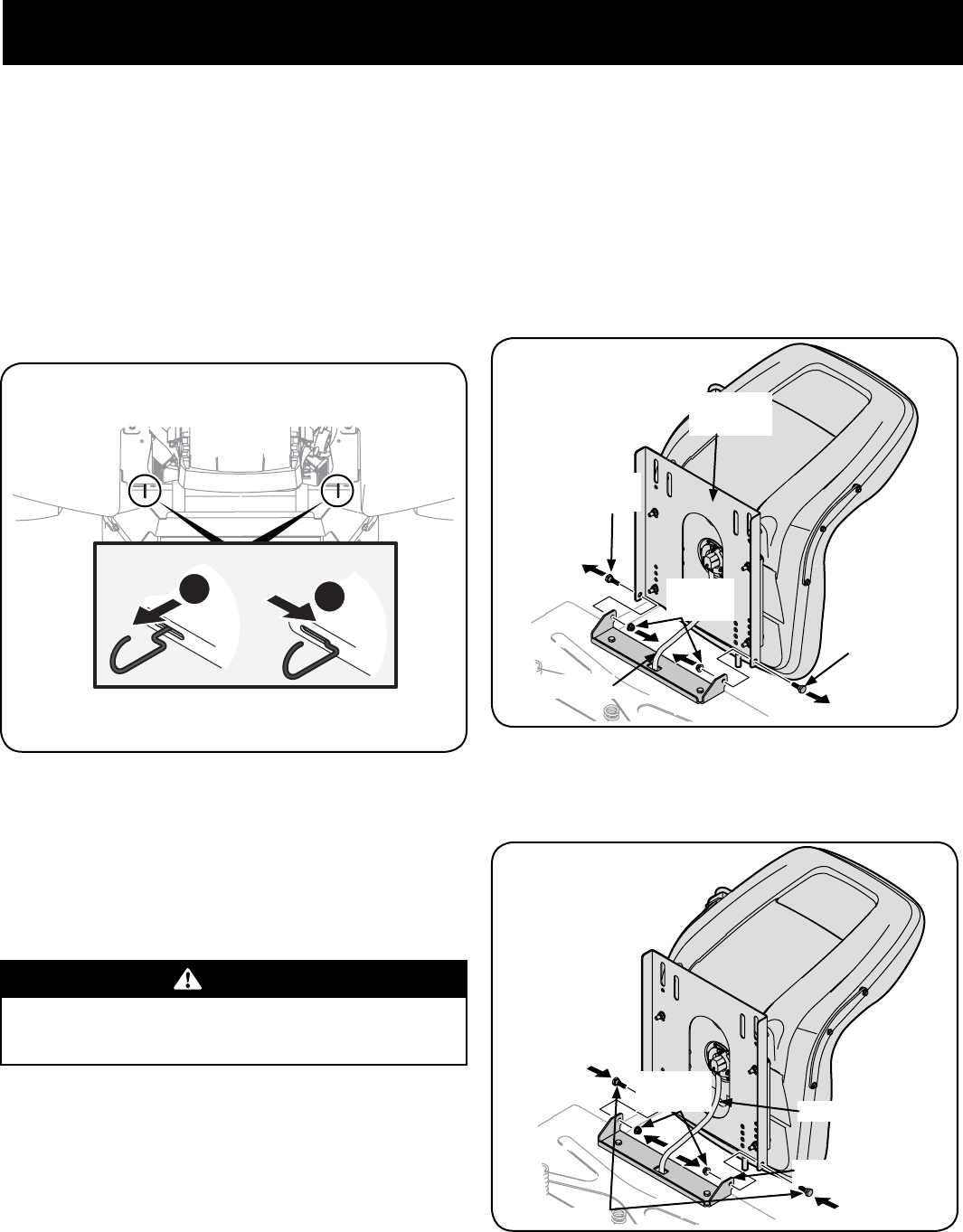 grass, unclogging chute, removing any grass or debris, or making any