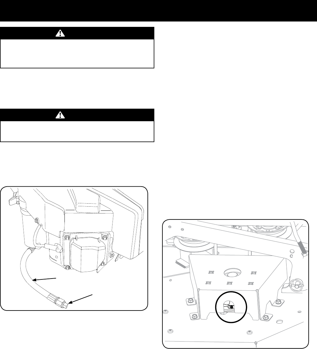 • Do not put hands or feet near rotating parts or under the cutting deck.