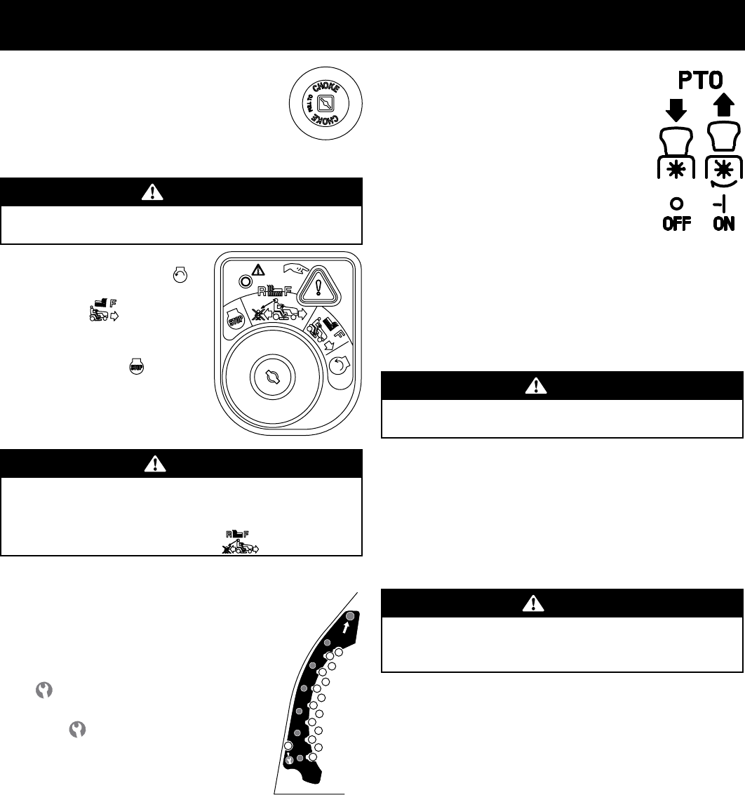 El motor no arranca 1. Perilla de toma de fuerza (PTO)/activación de cuchilla