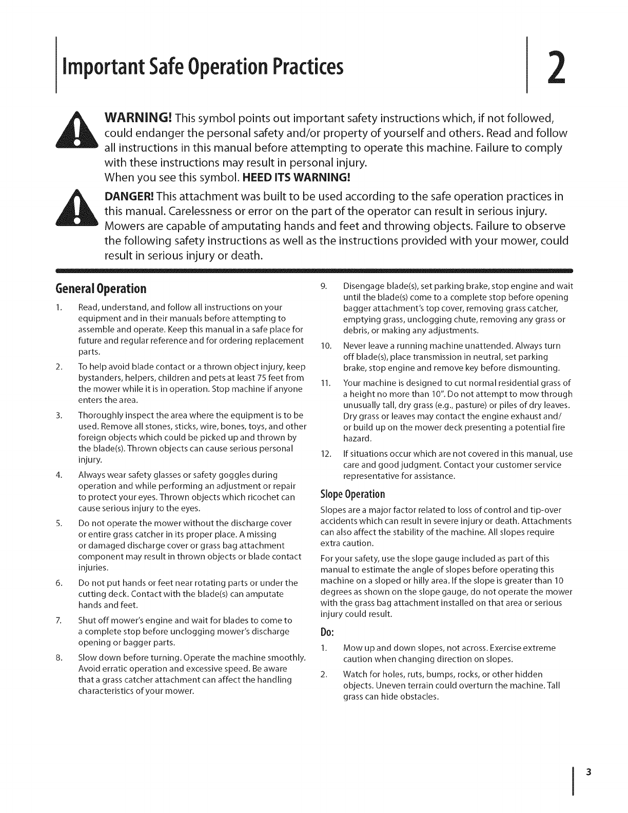 DANGER! This attachment was built to be used according to the safe operation practices in