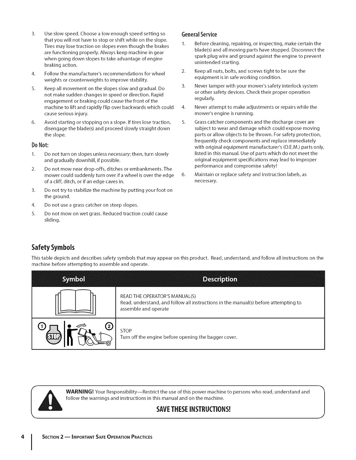 Mowers are capable of amputating hands and feet and throwing objects. Failure to observe