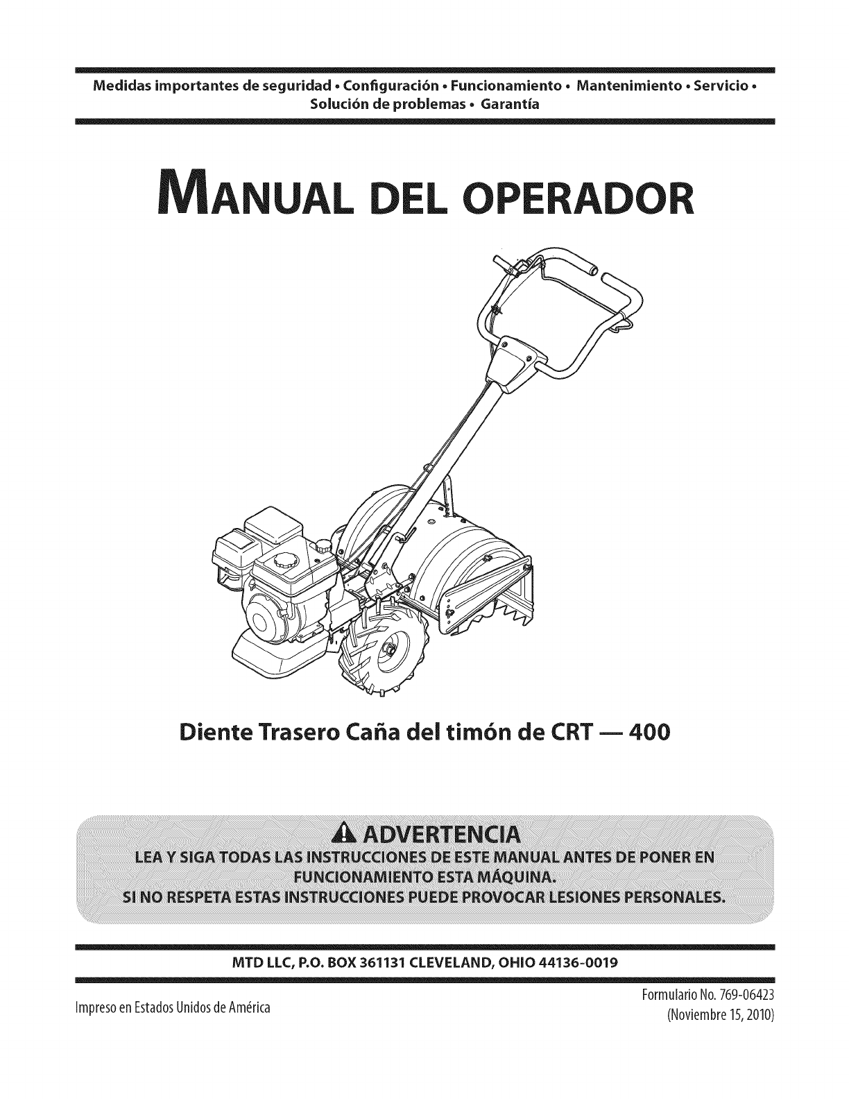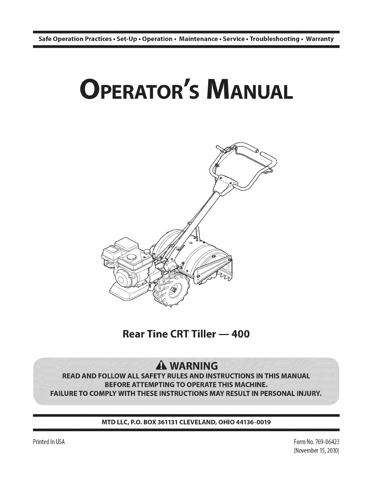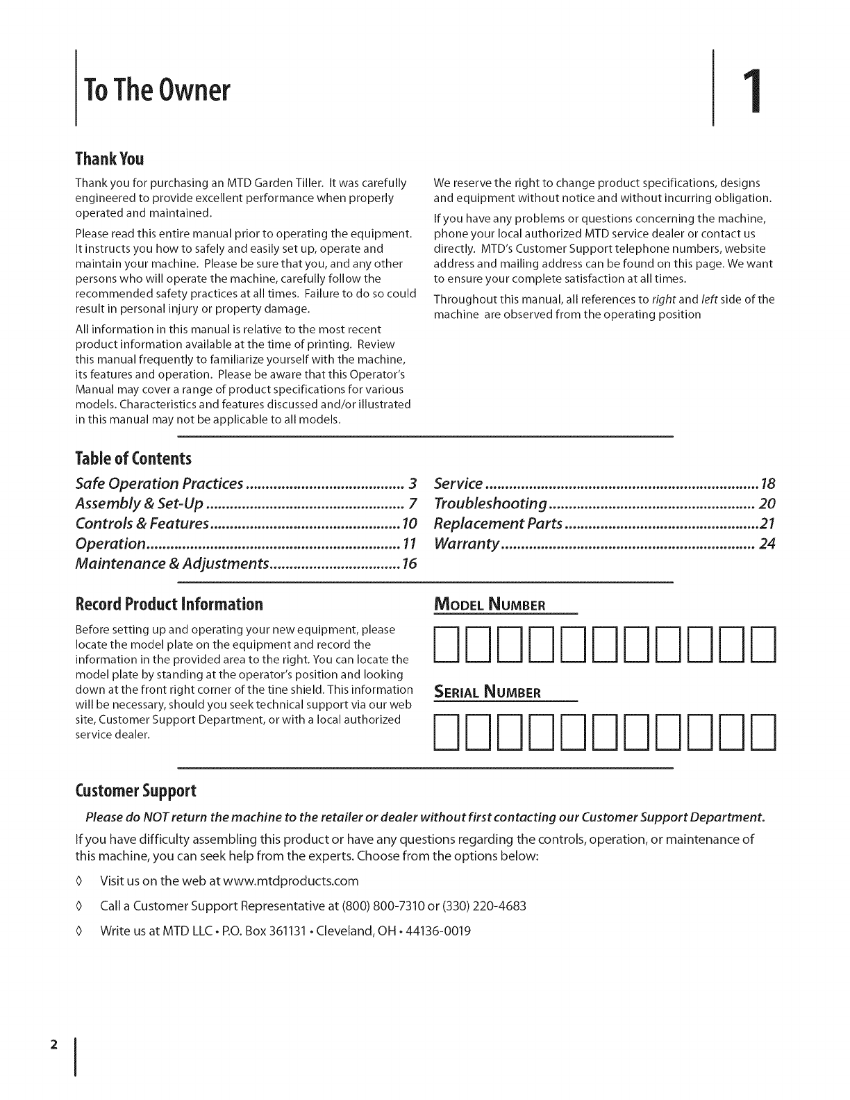 Thank you for purchasing an MTD Garden Tiller. It was carefully
