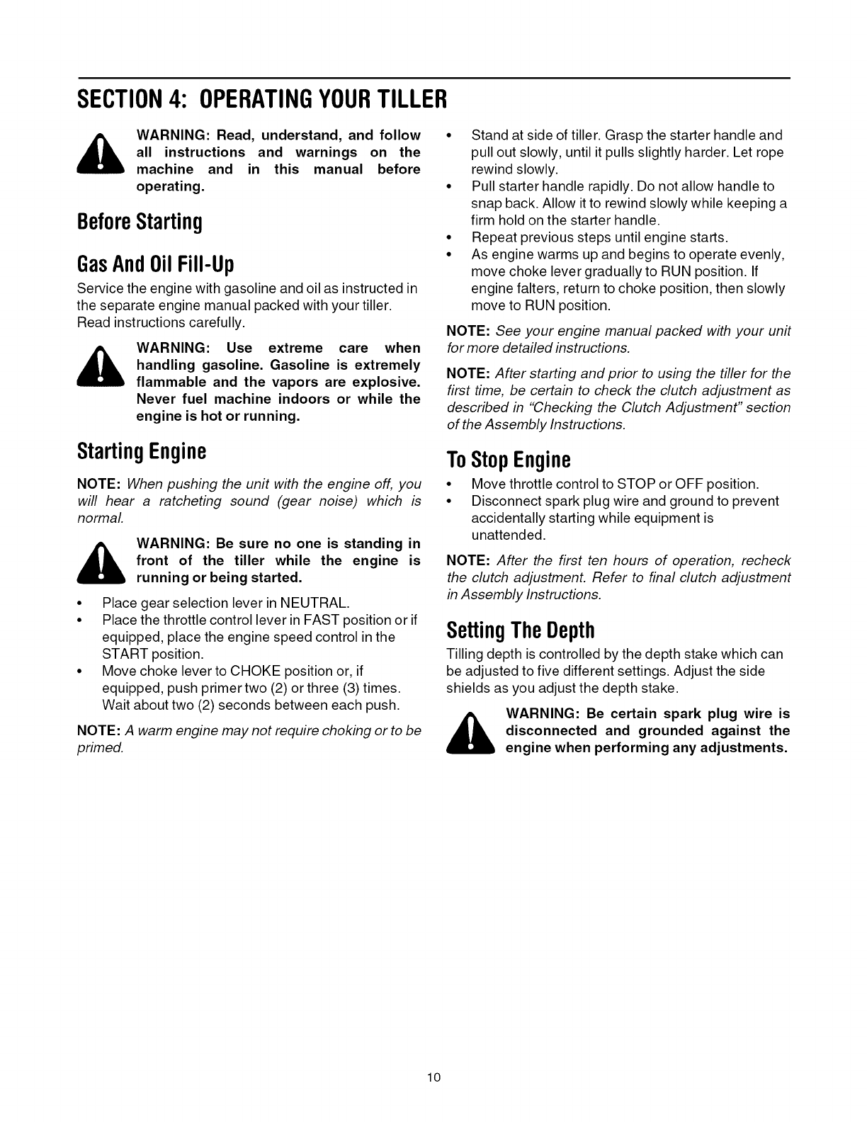 Operating Your Tiller 10