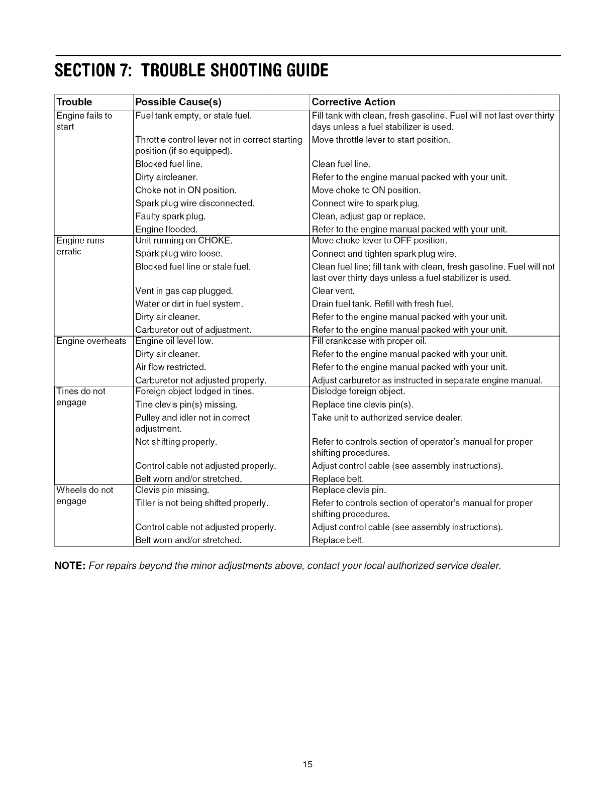 authorized service dealer.